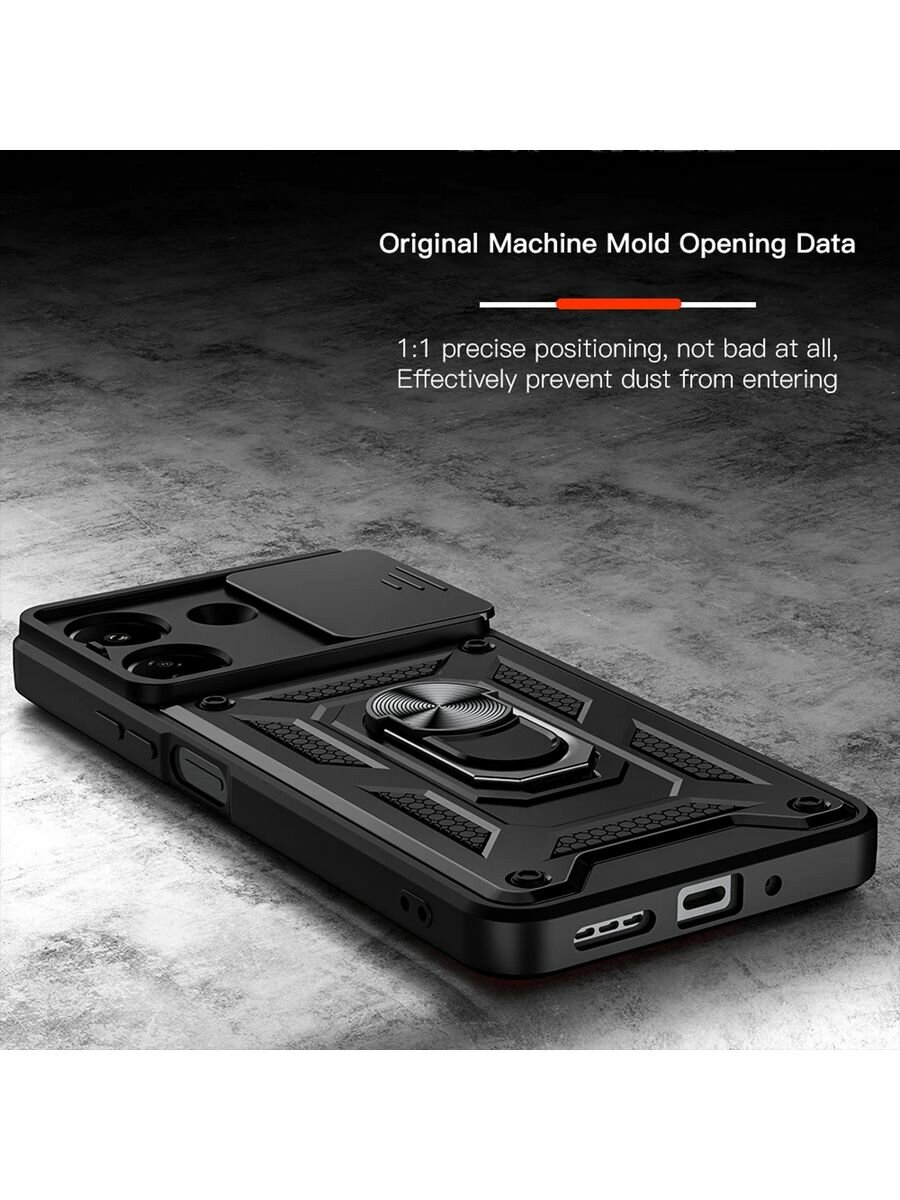 Противоударный чехол на Tecno Pova Neo 3 (LH6n) (6.82"), серебро. Кольцо-держатель и магнитное крепление, яркие пластиковые защитные вставки