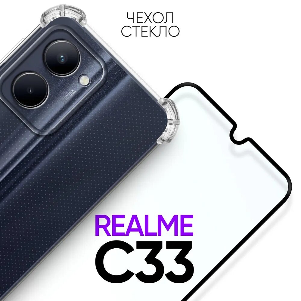 Комплект 2 в 1: Прозрачный чехол + стекло для Realme C33 / Реалми С33 информация: