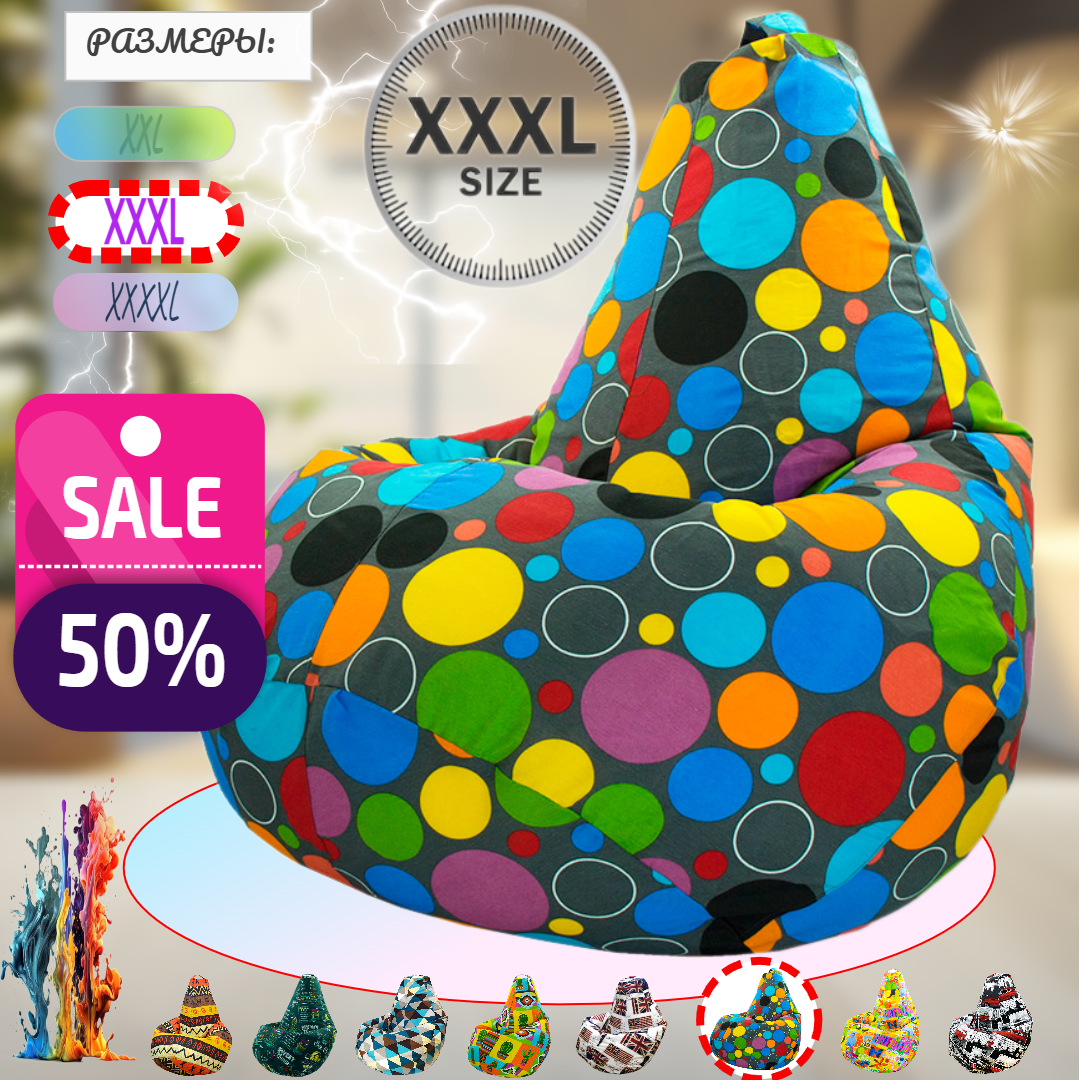 Кресло-мешок Груша жаккард, цвет Плей (размер XXXL), PuffMebel 6 237 ₽