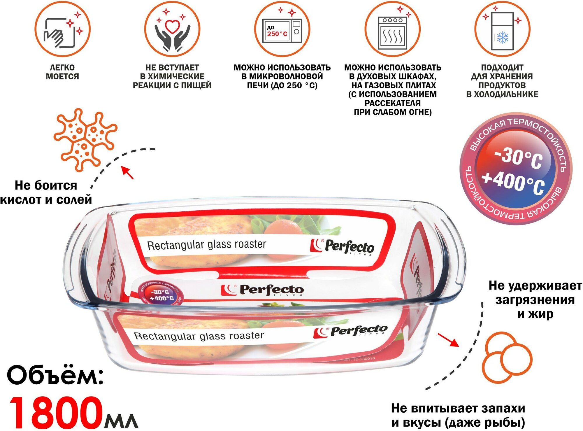 Форма для выпечки из жаропрочного стекла прямоугольная PERFECTO LINEA 1,8 л (12-180010) информация: