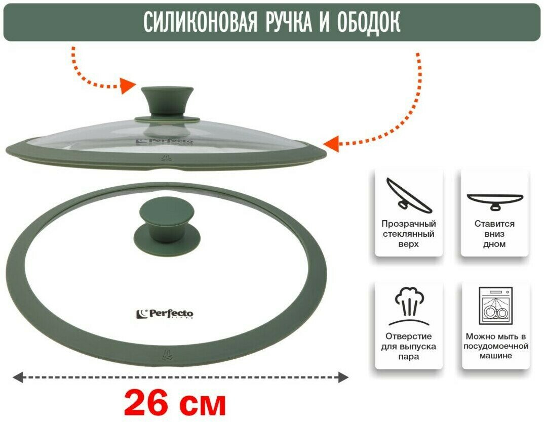 10 цен на Крышка стеклянная для сковороды PERFECTO LINEA Natural Green 26 см с силиконовым ободом (25-026342)