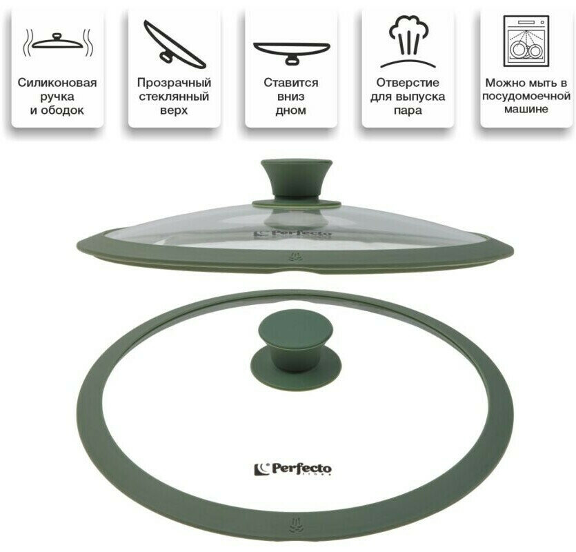 Отзывы на Крышка стеклянная для сковороды PERFECTO LINEA Natural Green 26 см с силиконовым ободом (25-026342)