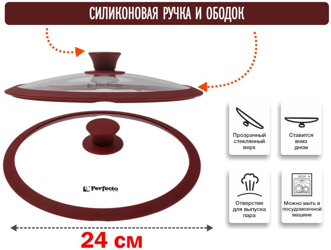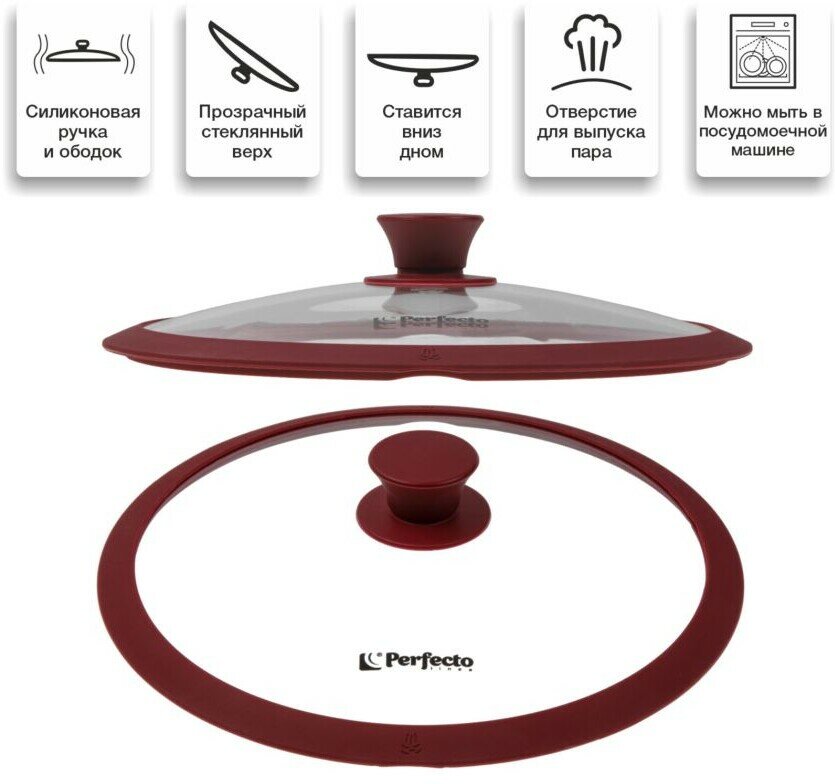 Отзывы на Крышка стеклянная для сковороды PERFECTO LINEA Burgundy 24 см с силиконовым ободом (25-024321)