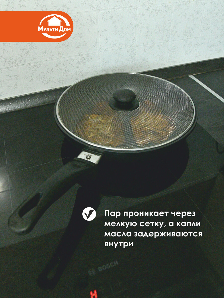 Крышка и экран от брызг 28см для сковородок, кастрюль, стальная сетка информация: