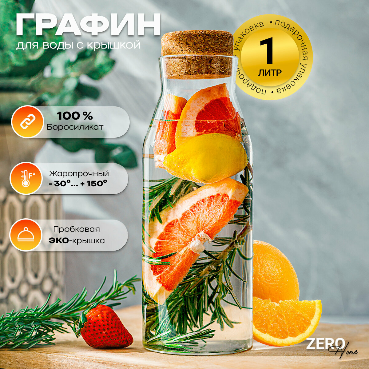 Графин для воды Zero Home с крышкой, боросиликатное стекло, 1 л информация: