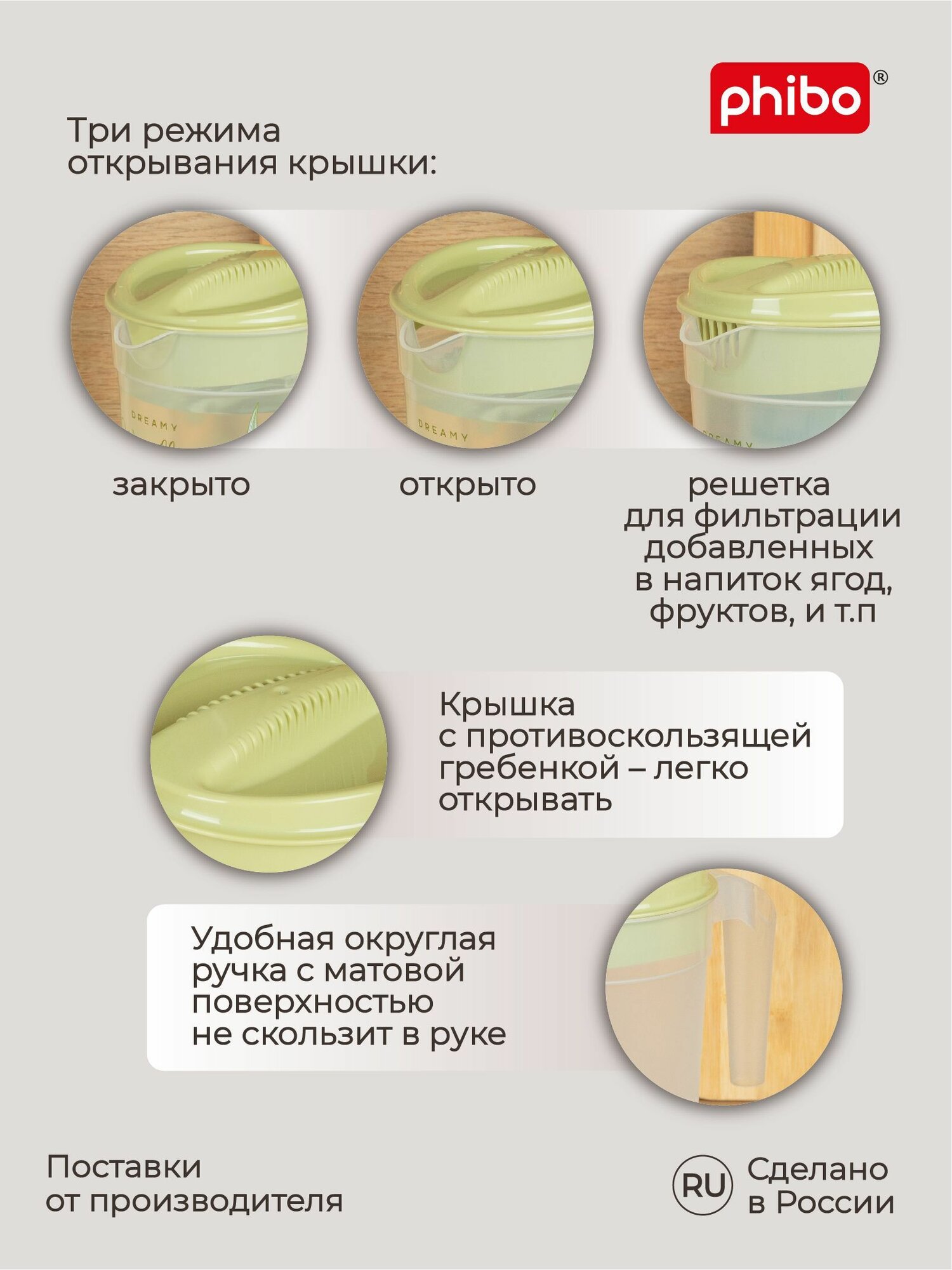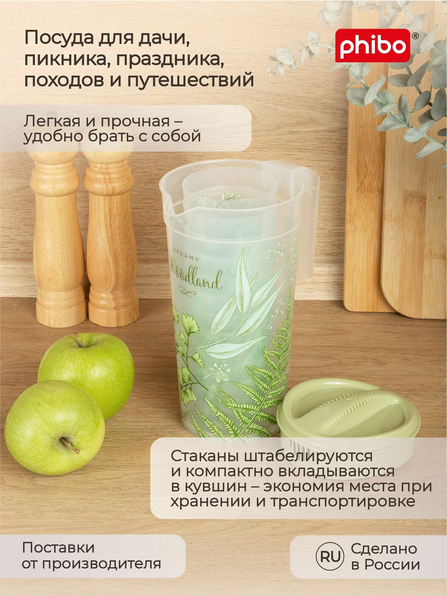 Набор: кувшин для воды 1,5 литра + 6 стаканов (Зеленый), Phibo информация: