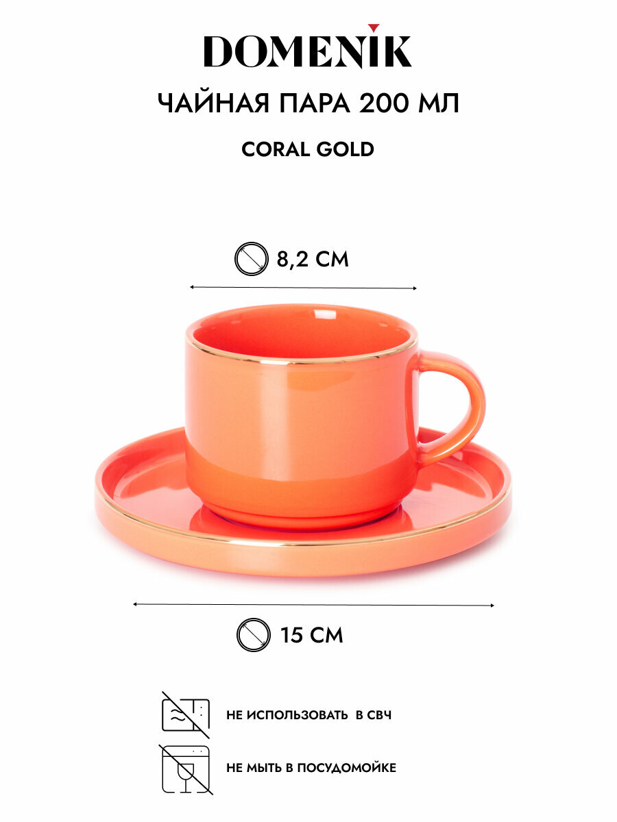 Чайная пара Domenik CORAL GOLD 200мл, 2 предмета, фарфоровая информация: