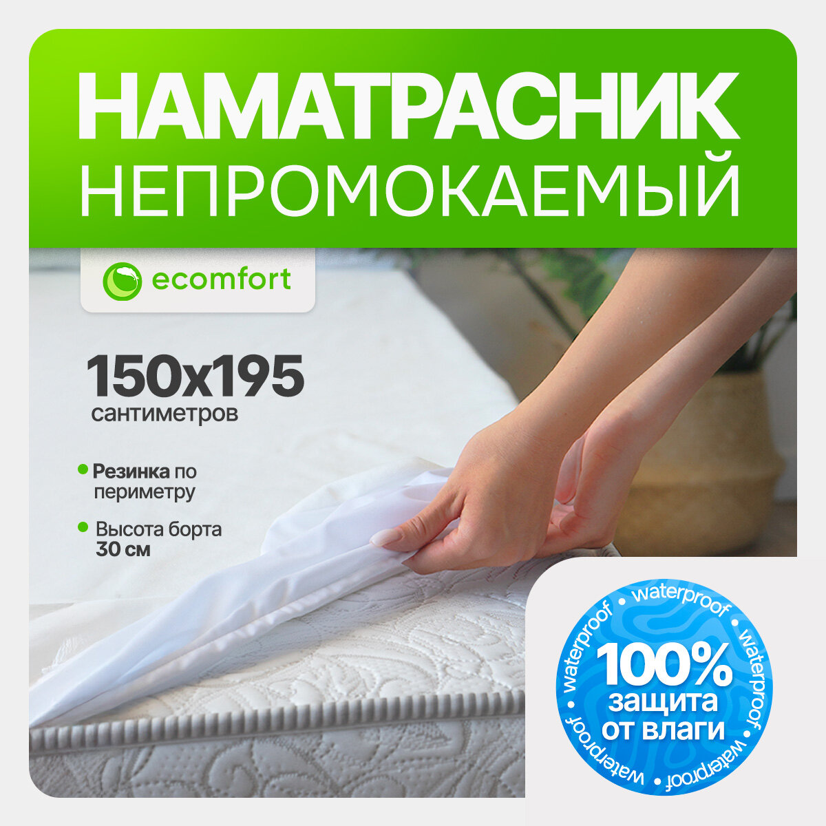 10 цен на Наматрасник 150х195 непромокаемый на резинке хлопковый белый мягкий