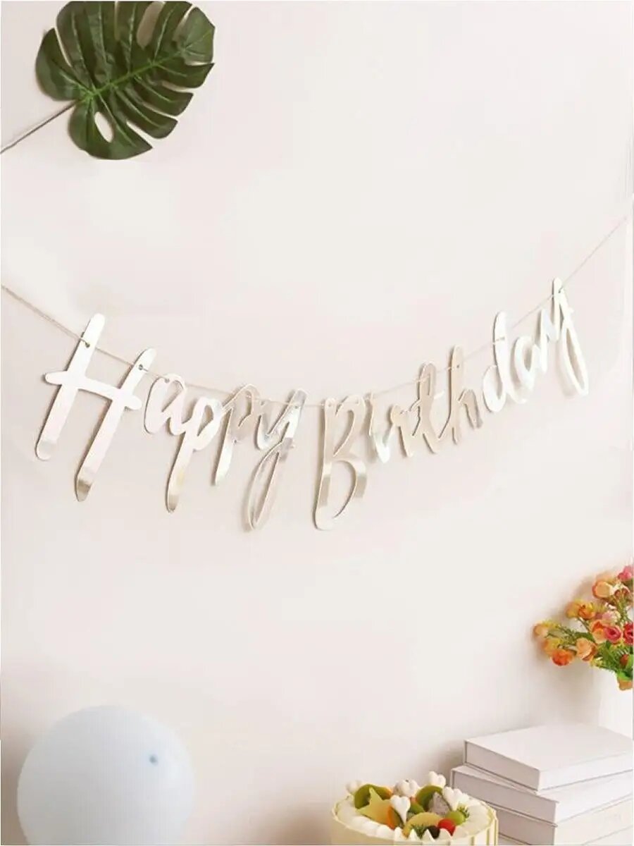 Отзывы на Гирлянда Happy Birthday (С Днем рождения), серебро бумажная растяжка