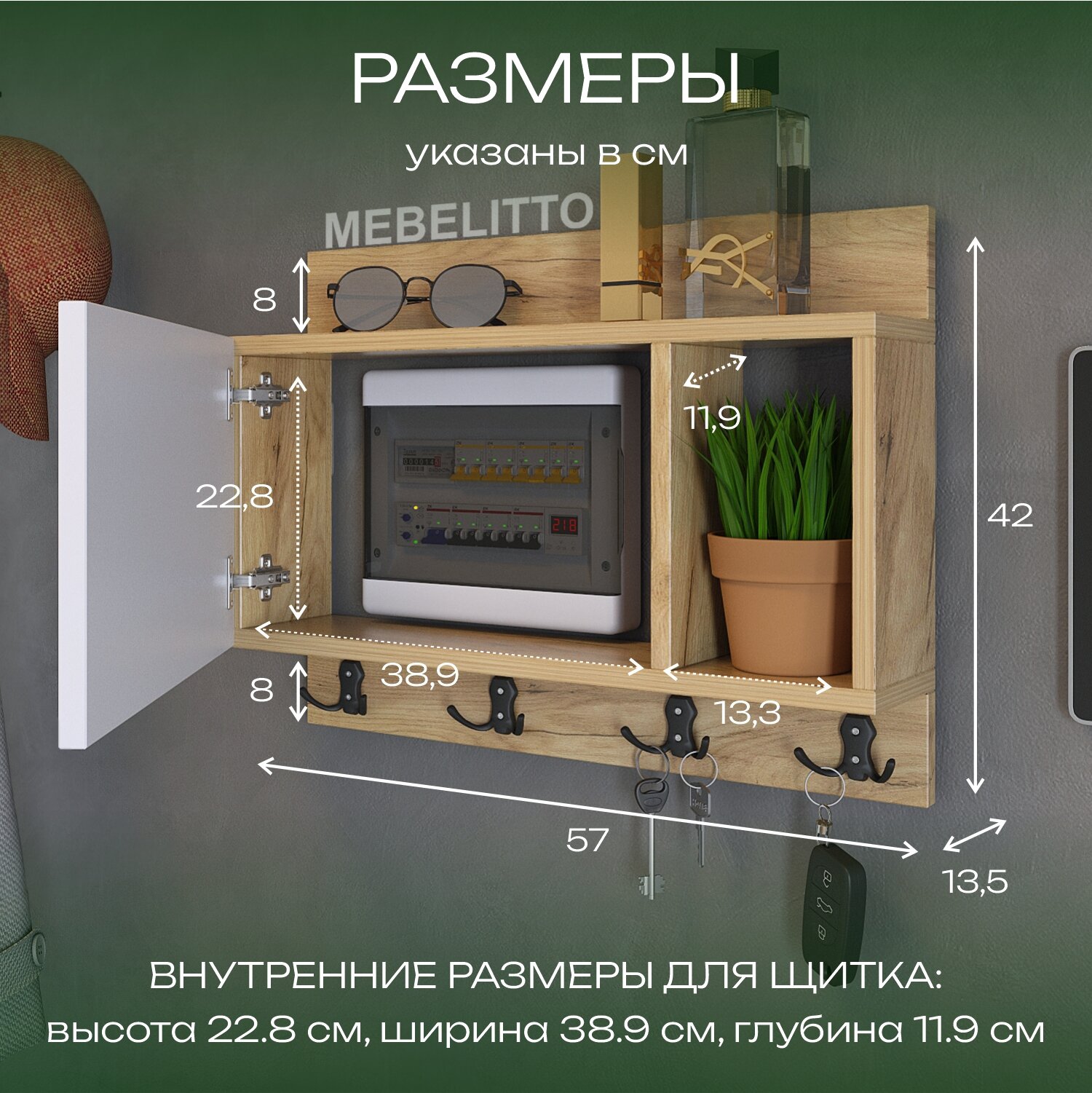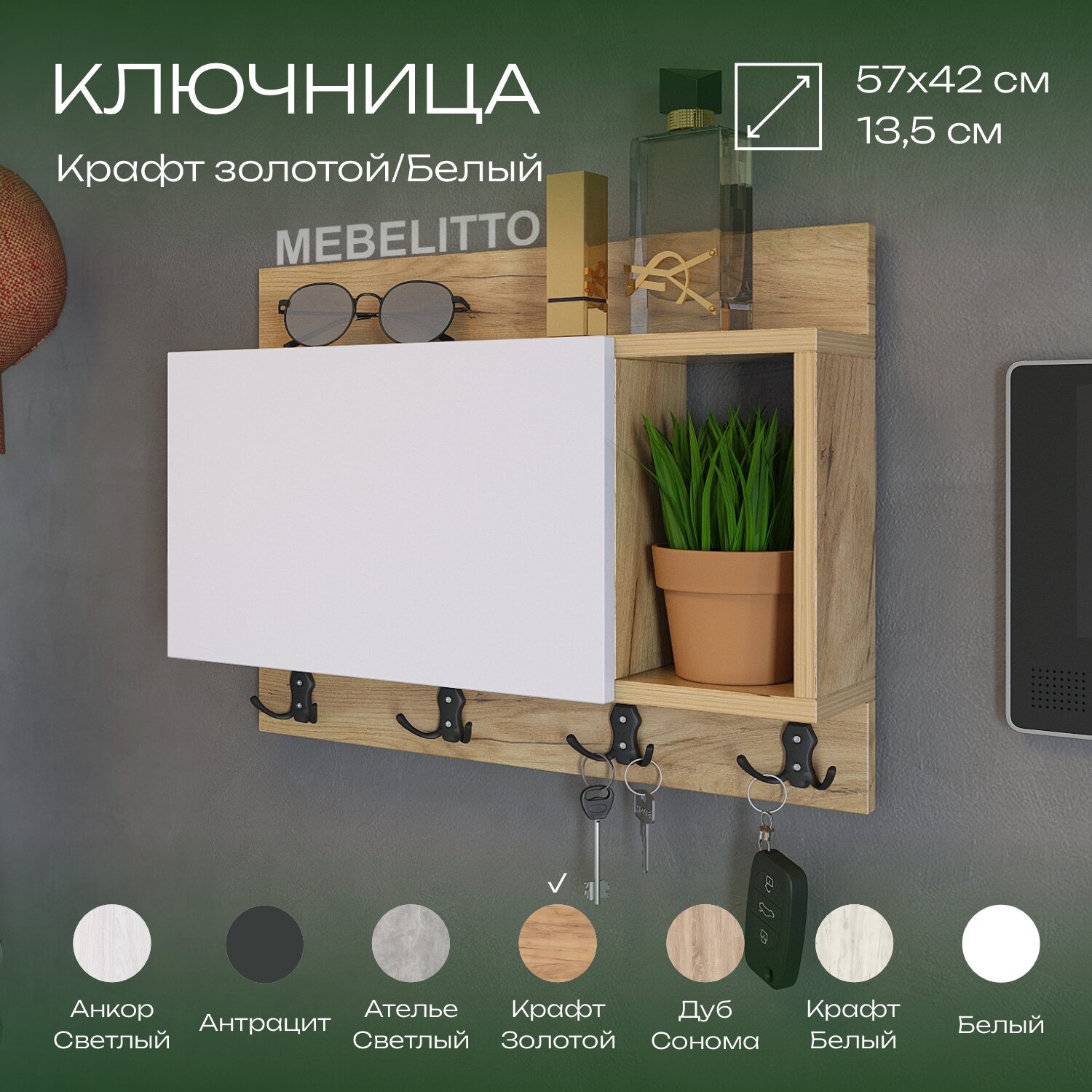 Отзывы на Ключница настенная в прихожую деревянная на щиток Дуб крафт золотой