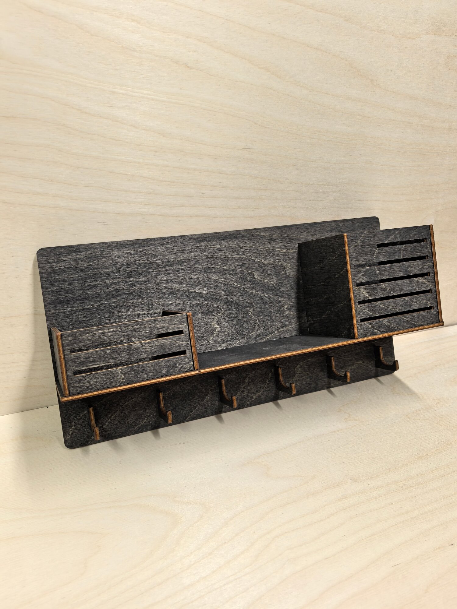 Отзывы на Ключница настенная черная большая Bezusoff 38 на 19 см с 6 крючками, полочкой и 2 отделениями. Без надписи