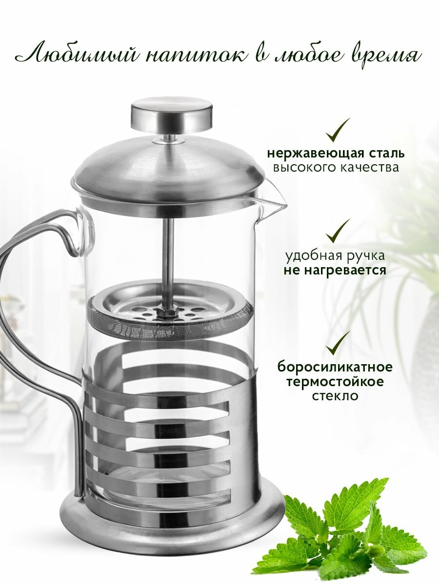 Стеклянный френч-пресс 350 мл заварочный чайник, полосы 792 ₽