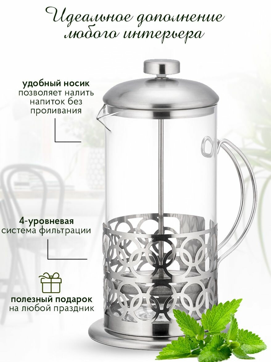 Стеклянный френч-пресс 350 мл заварочный чайник, круги 619 ₽