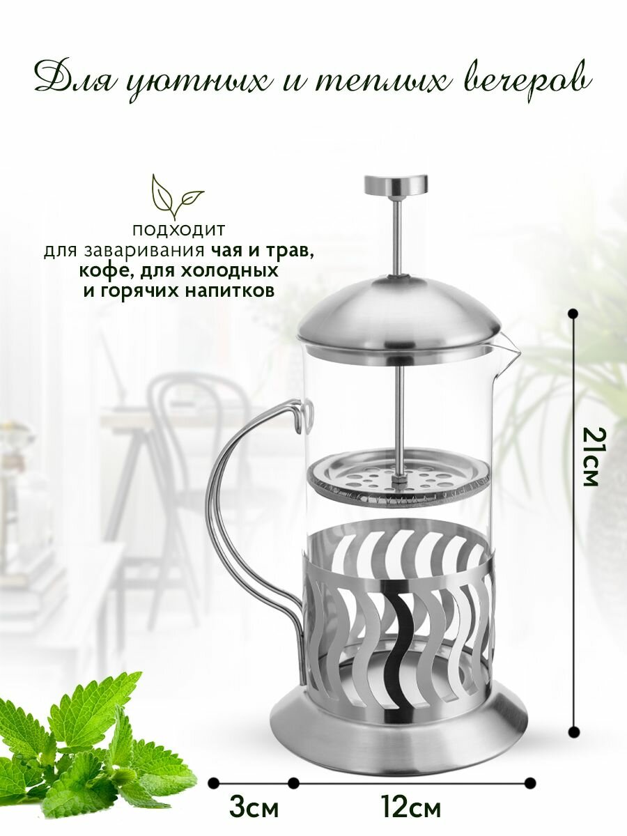 Стеклянный френч-пресс 350 мл, заварочный чайник со стеклянной колбой и прессом 503 ₽