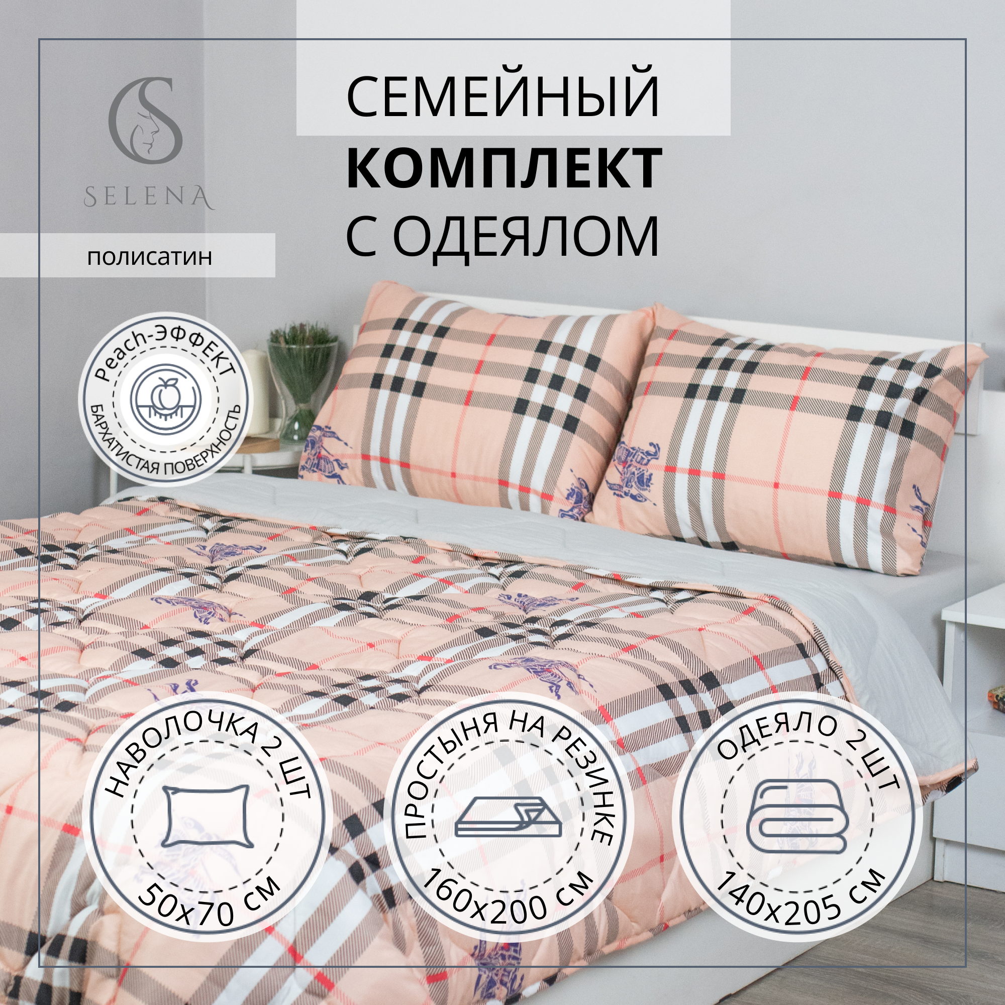 Комплект постельного белья с одеялом SELENA Фенек евро из полисатина, наволочка 2 шт 2 319 ₽