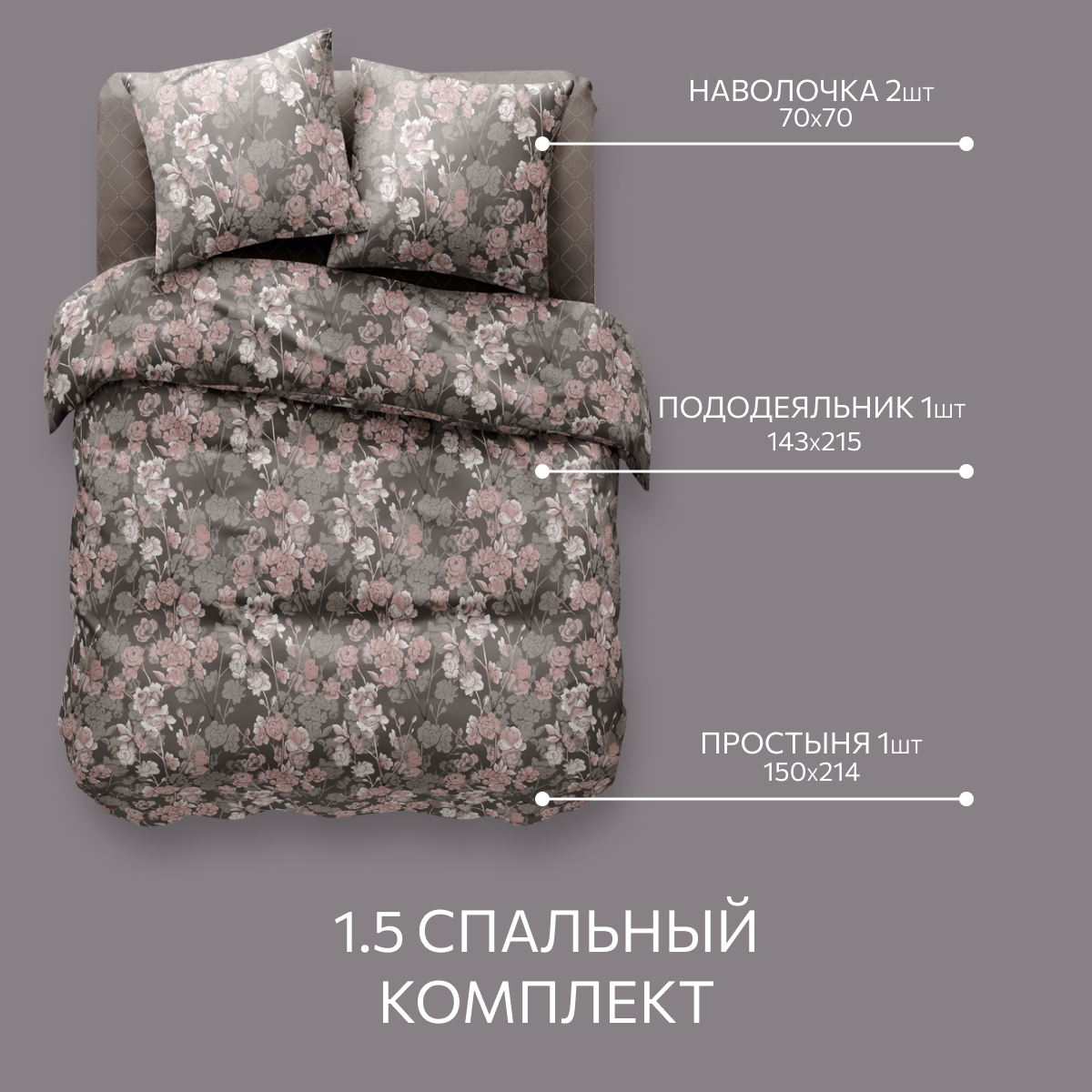 Постельное белье Сказка Сатин "Lester" 1,5-сп наволочка 50х70 1шт Простынь на резинке 90х200 см Пододеяльник 145х215 см