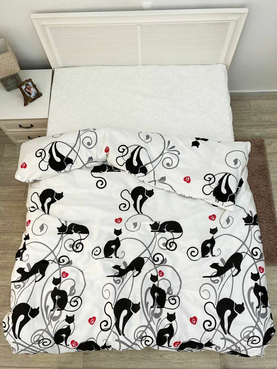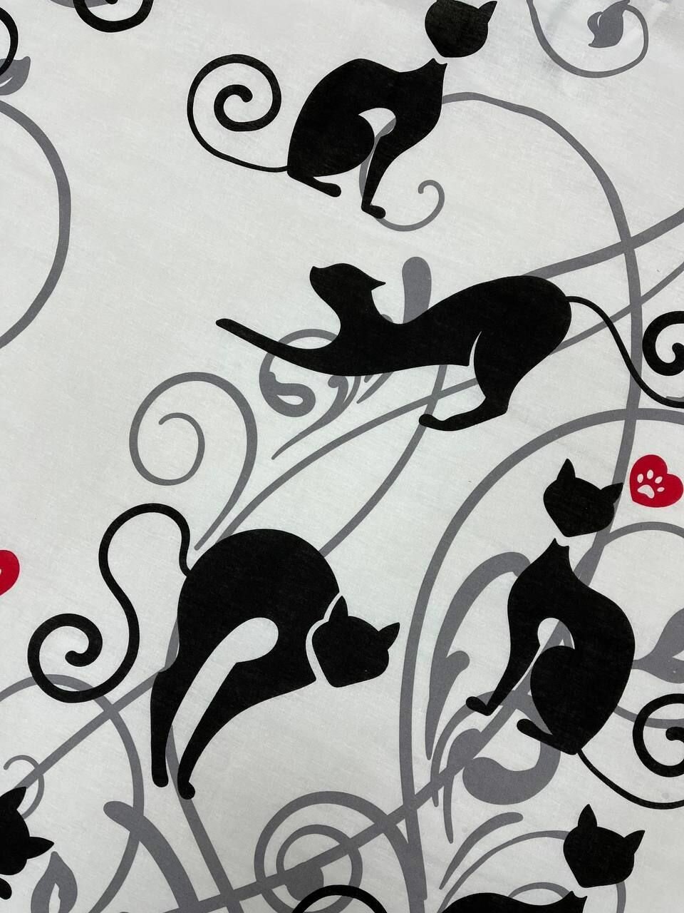 Пододеяльник 145х215 см на молнии, 1,5 спальный, Сказка Сатин "котики (мята)", ткань сатин, 100% хлопок