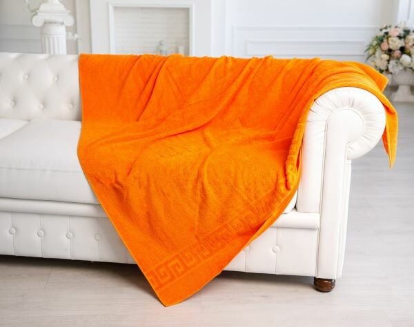 Простынь махровая 150х200, 100% хлопок, одеяло (оранжевая)