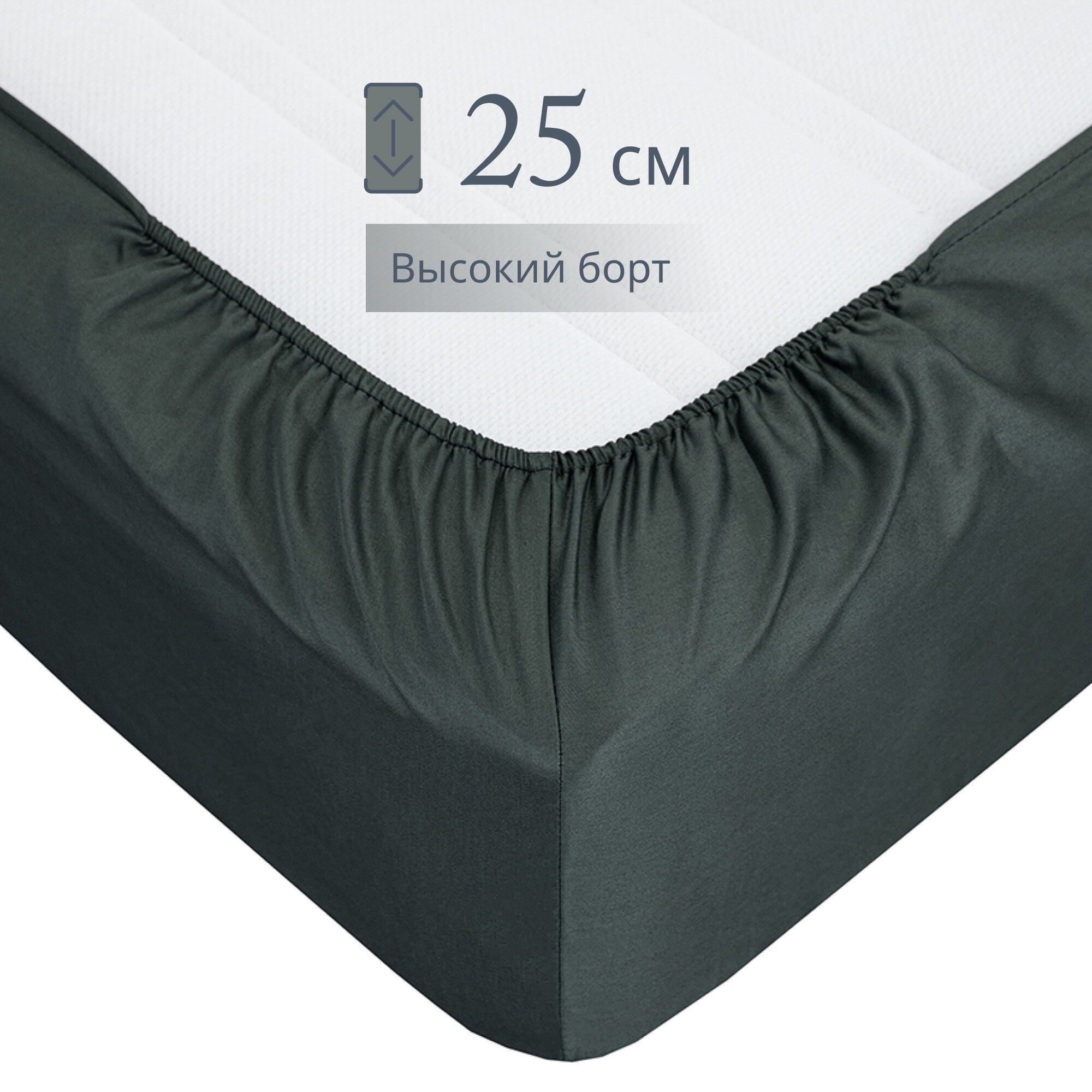 10 цен на Простыня на резинке Евро размер 180х200 Monocolor Антрацит Сатин,100% хлопок