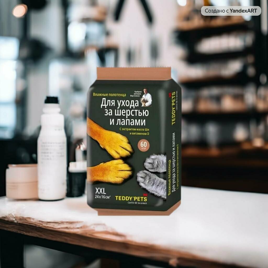 Teddy Pets Влажные полотенца для ухода за шерстью и лапами, 60 шт информация: