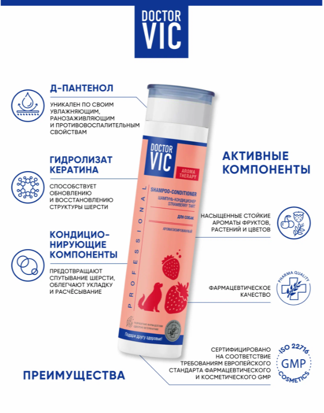 Шампунь-кондиционер Doctor VIC Шампунь для собак всех пород "STRAWBERRY TART" с клубнично-ванильным ароматом 250 мл. информация: