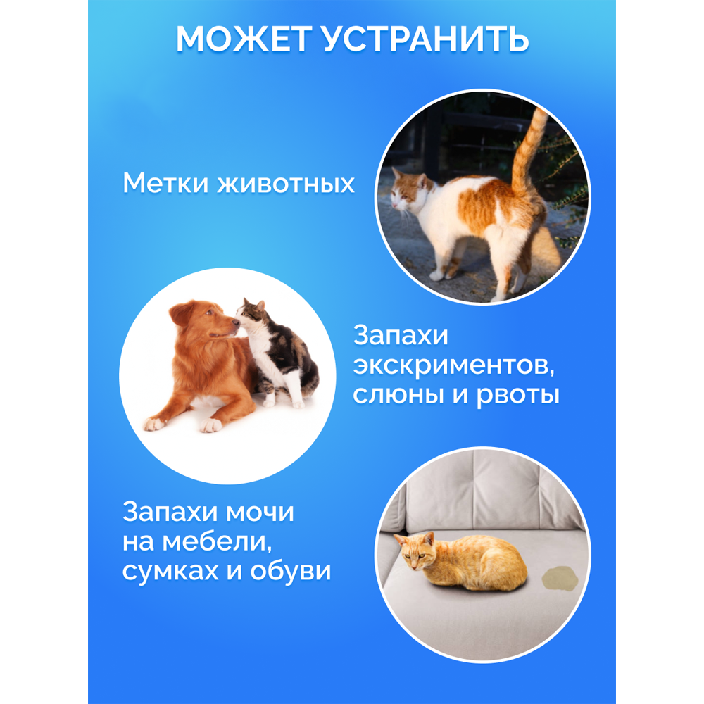 | Дополнительная информация | устраняет запах экскрементов, меток животных, слюней, рвоты, псины, разложений |