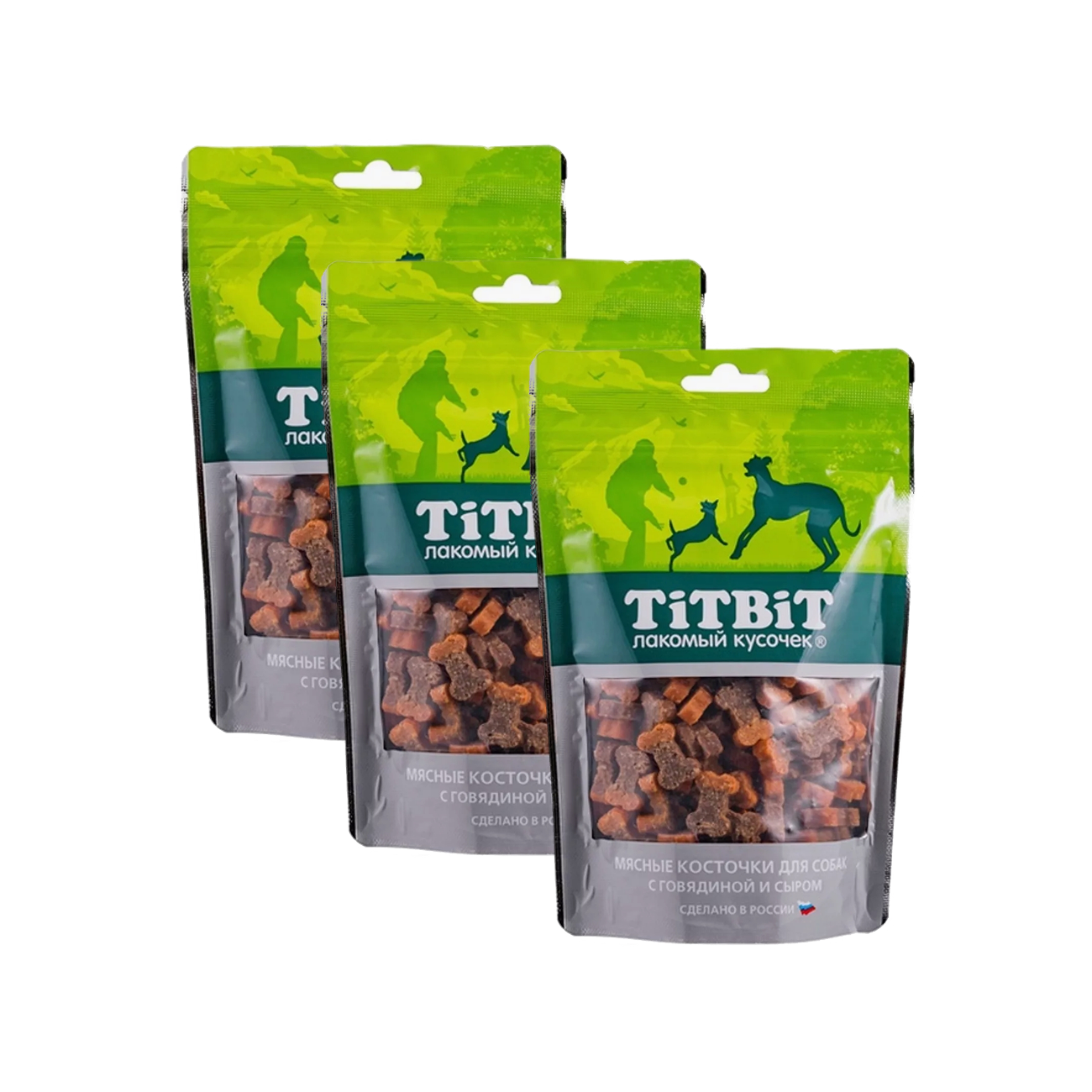 10 цен на Титбит Лакомство для собак Косточки мясные с Говядиной и сыром 3 пачки по 145г