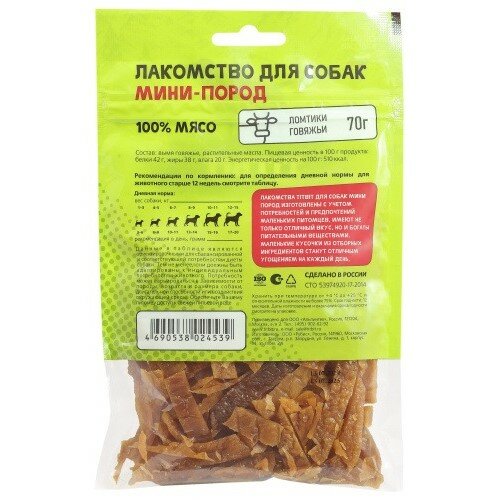 Лакомство TiTBiT Ломтики говяжьи для собак мелких пород (70 г) информация: