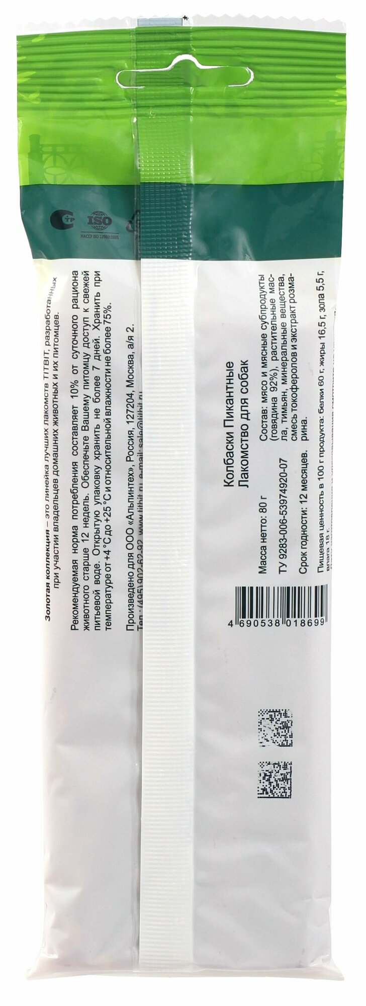 Лакомство TiTBiT золотая коллекция колбаски пикантные для собак (80 г) информация: