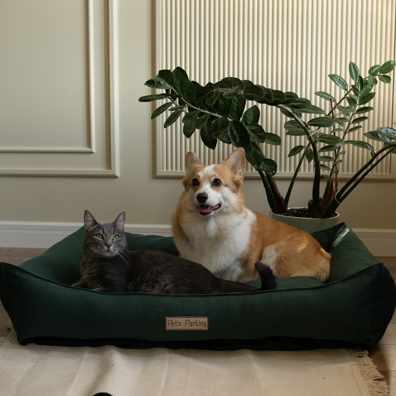 Лежанка для животных со съемным чехлом Pet's Parking, размер M 75x65, зеленая 4 255 ₽
