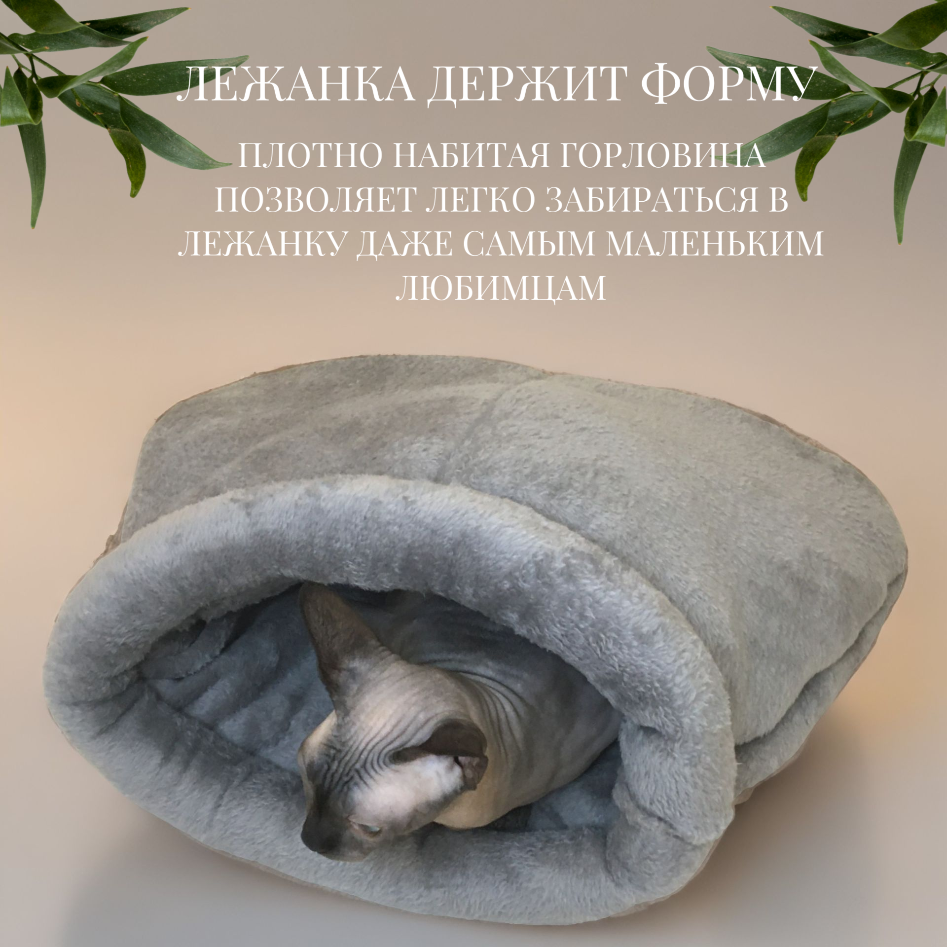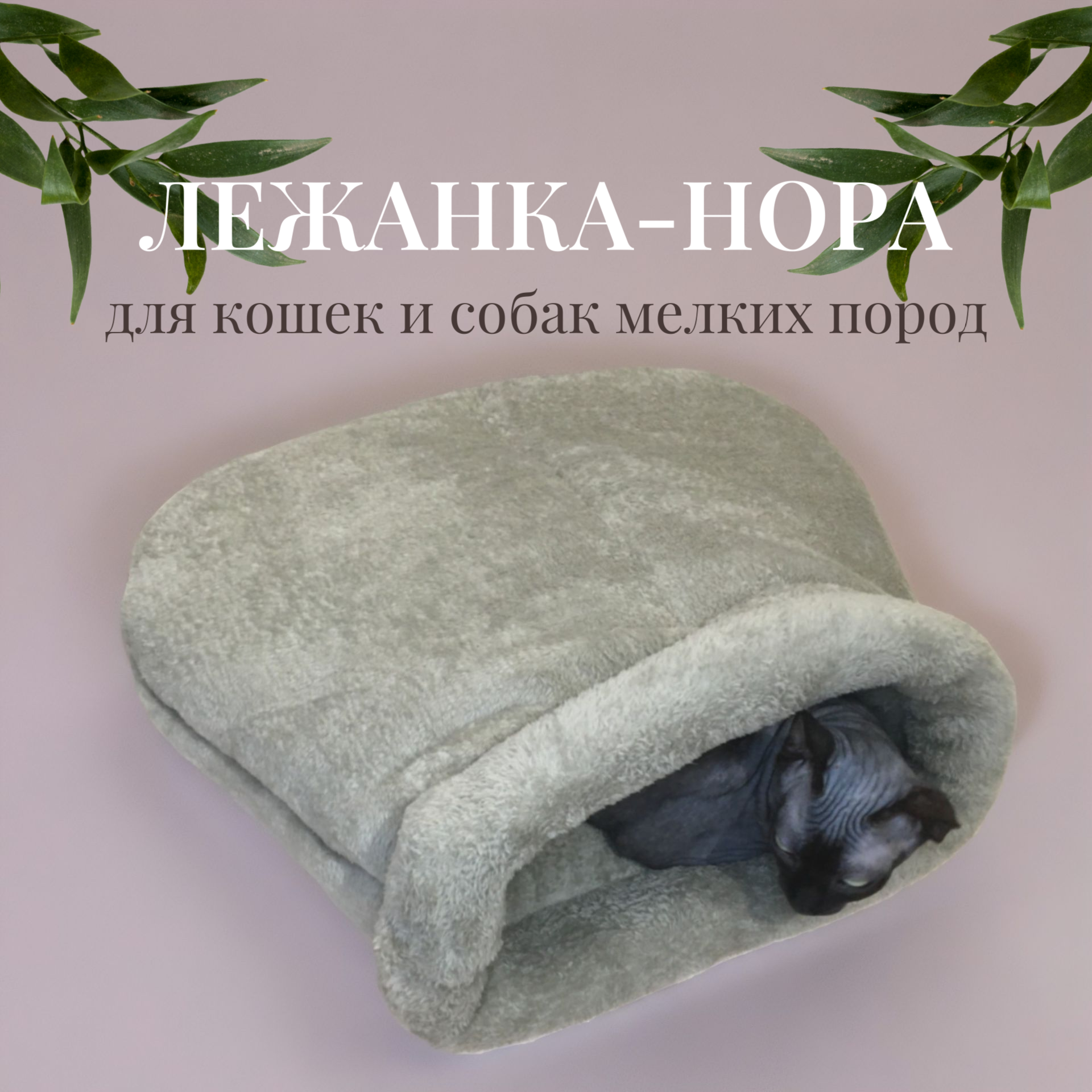 Лежанка Emmy Stil "Варежка", велсофт/синтепон, для кошек и мелких собак, серая информация: