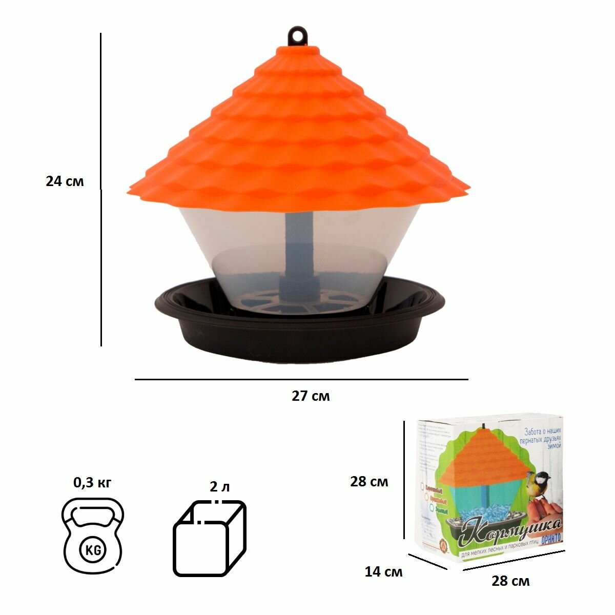 Кормушка для птиц Ornito КП01-О оранжевая пластиковая 2 л с защитой от воды информация: