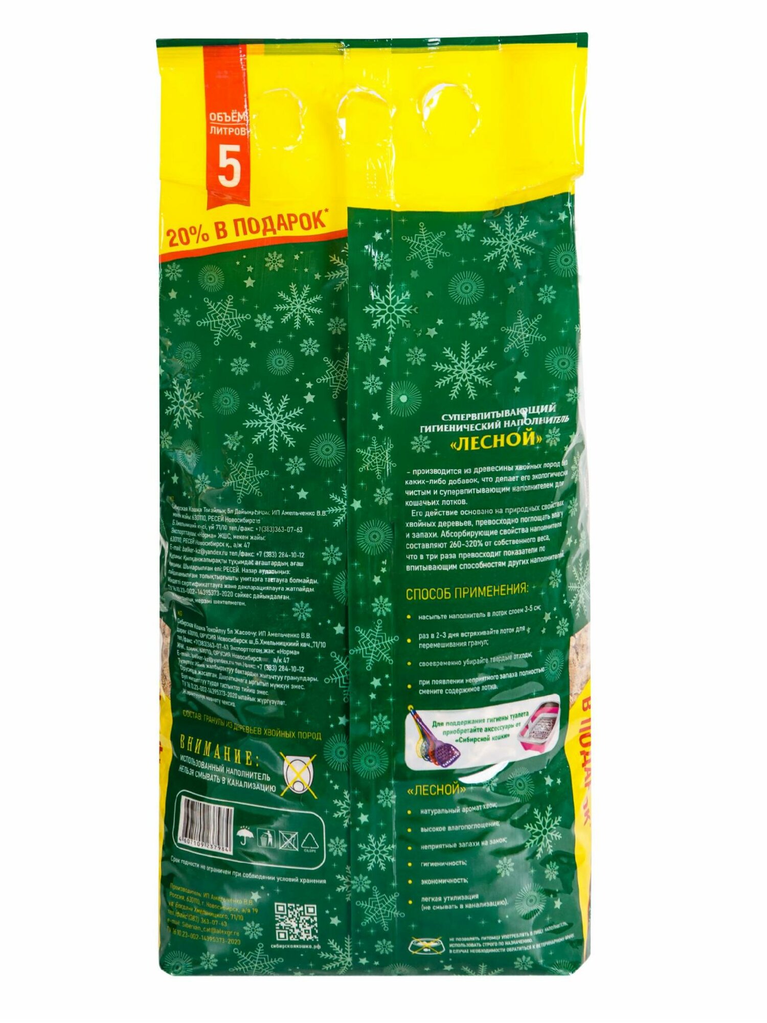 Впитывающий древесный наполнитель Лесной, 5 л + 20% в подарок информация: