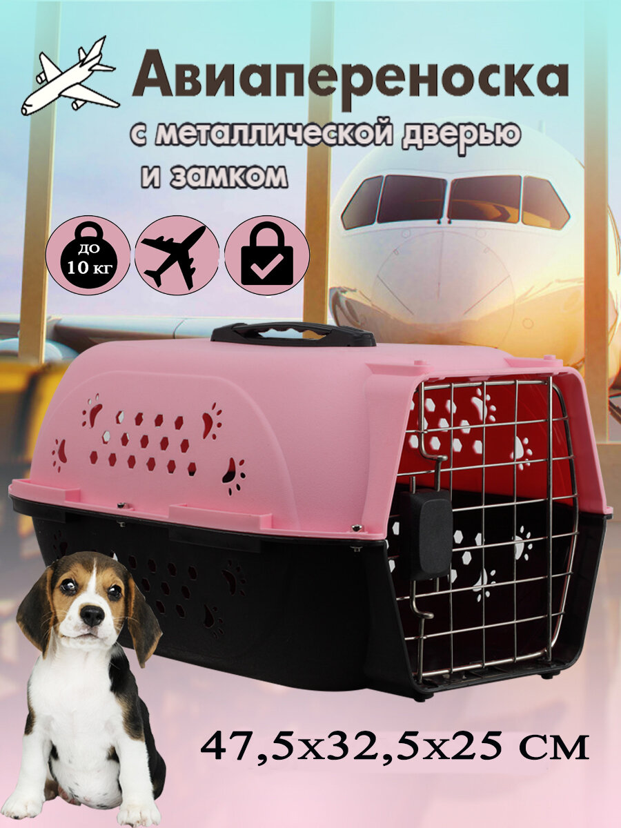 Авиа переноска для домашних животных "Чистый котик" 47,5х32,5х25 см, нержавеющая сталь, розовый информация: