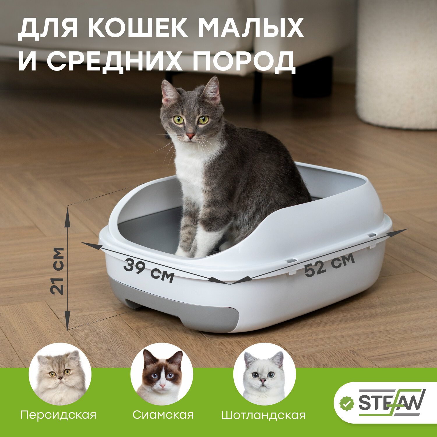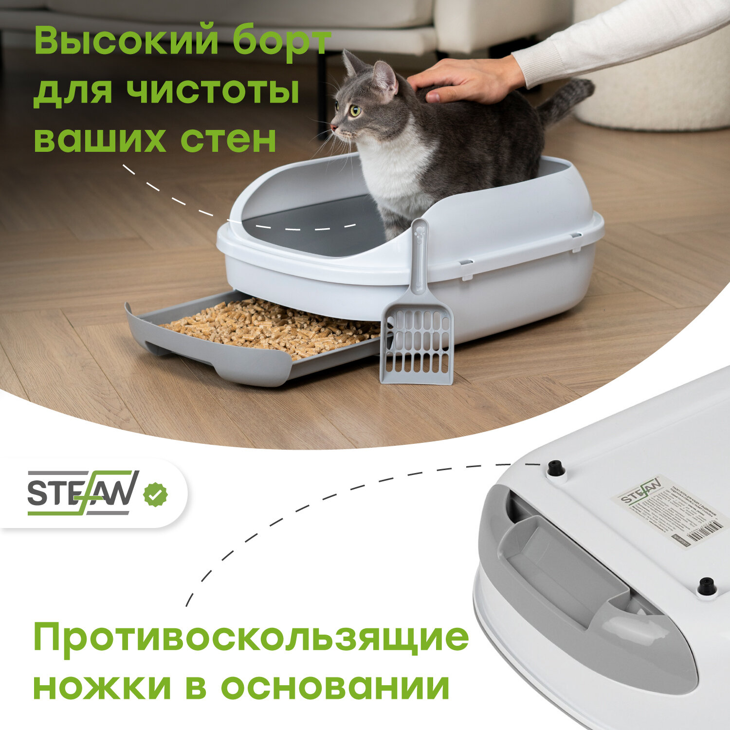 10 цен на Лоток для кошек системный STEFAN (Штефан) с высокими бортами, сеткой и выдвижным поддоном, (L) 51х40х21, серый, BP2911
