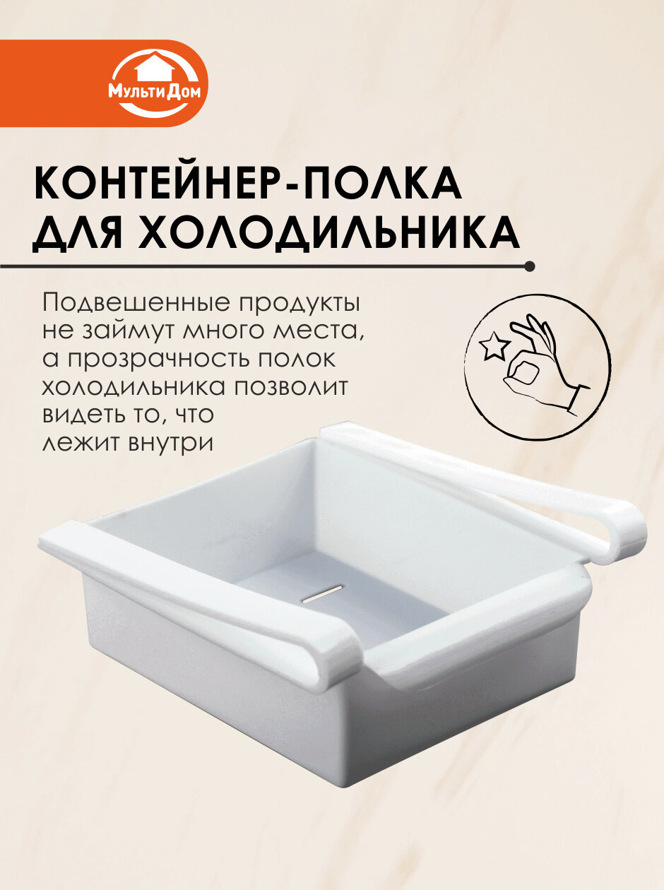 Полка-контейнер для холодильника , пластик, 16 см x 15.5 см x 7 см, белая информация: