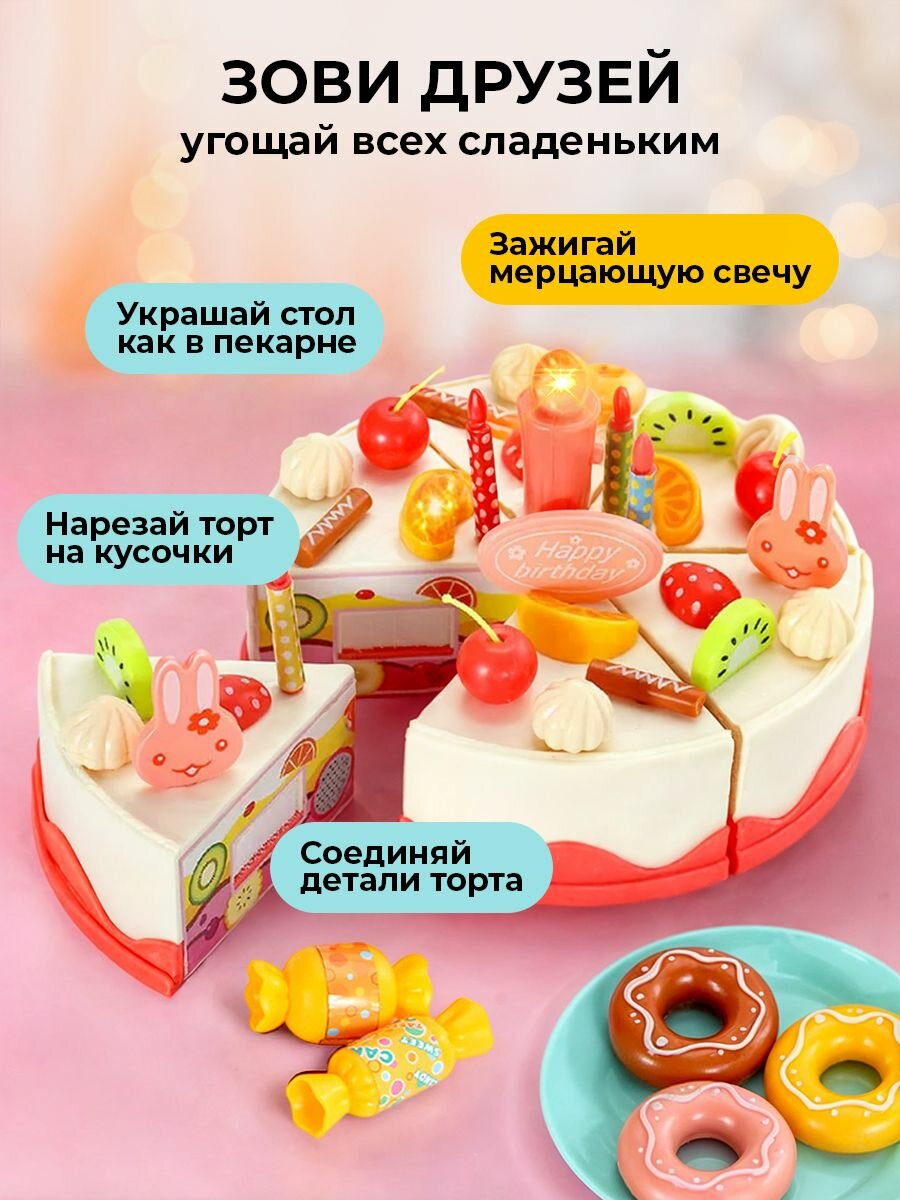 Торт игрушечный Play Okay кондитерский набор для детей, 83 предмета в комплекте, мини еда и продукты информация: