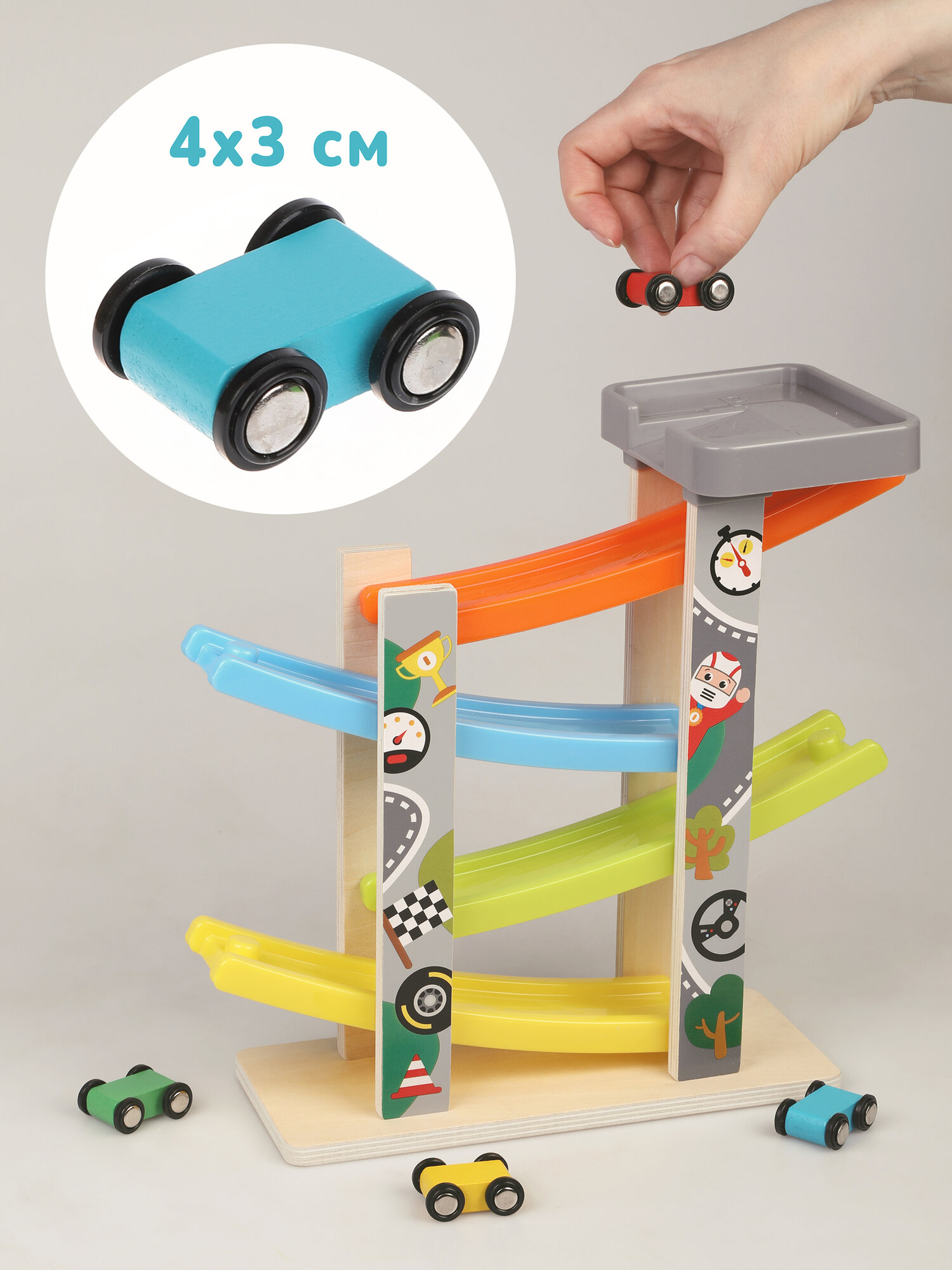 Автотрек деревянный Mapacha "Паркинг" 4 машинки , развивающая информация: