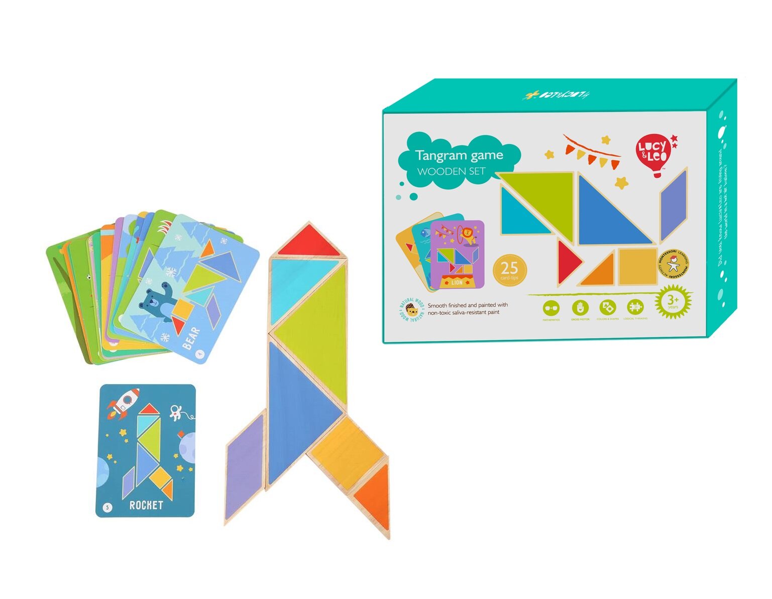 Деревянная игрушка Lucy&Leo "Танграм" развивающая, дерево, 25 заданий, от 3 лет информация: