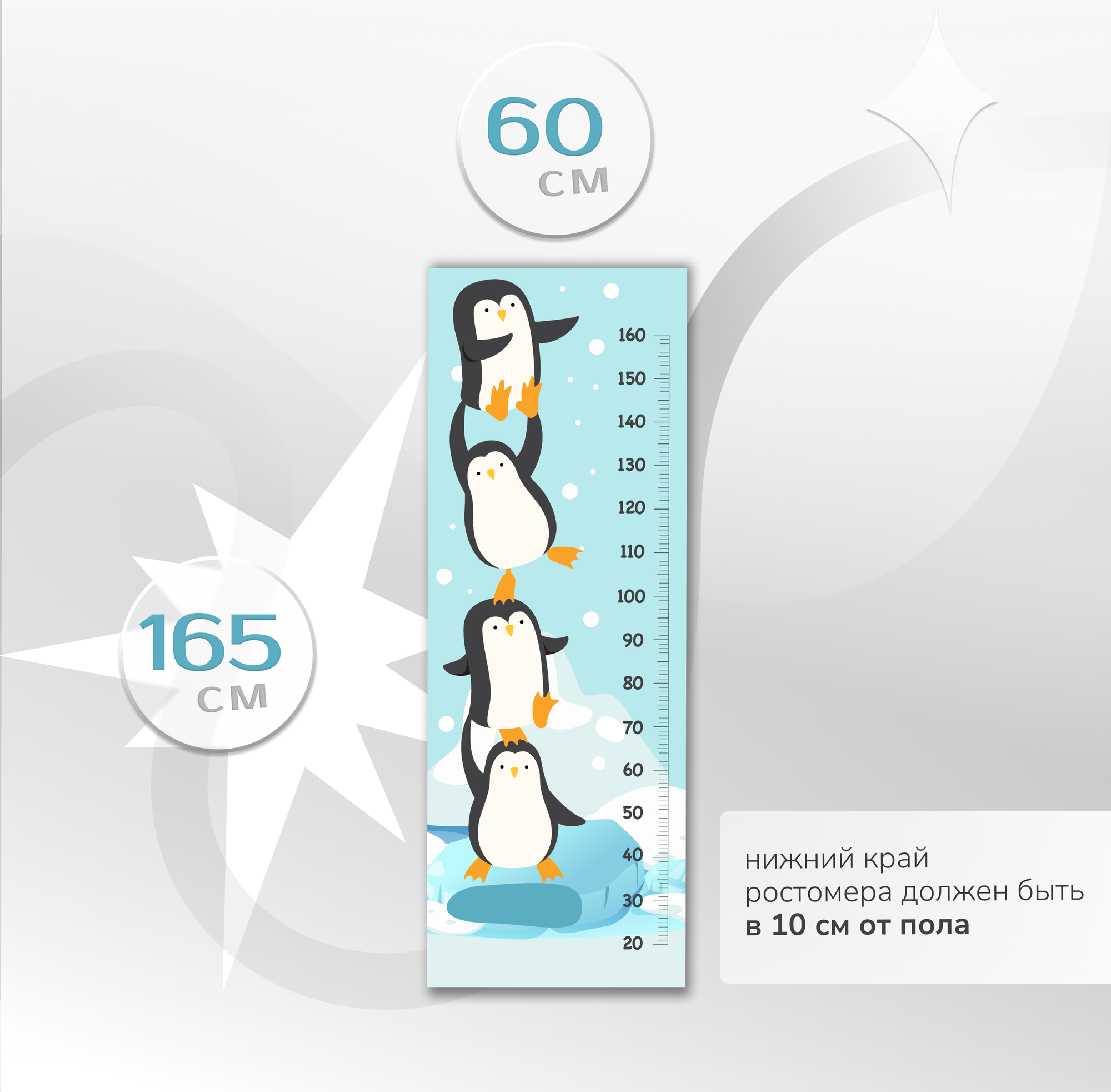 Отзывы на Ростомер Fotooboikin "Пингвин", самоклеящийся, винил, 60x165см, чёрный/белый/голубой