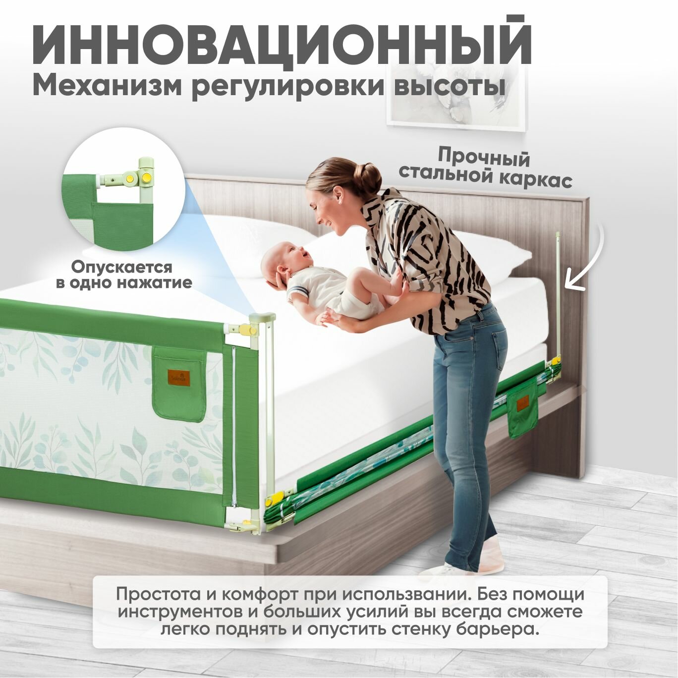 Отзывы на Барьер защитный для кровати от падений, бортик в кроватку для малыша 160 см SOLMAX, зеленый