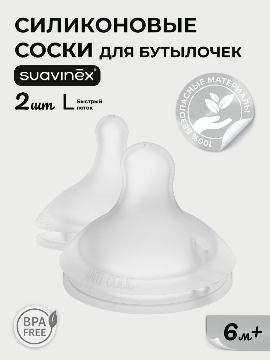 Соска силиконовая S (6+) для бутылочки "Suavinex" (2 штуки), быстрый расход, противоколиковая (307044) А 1 090 ₽