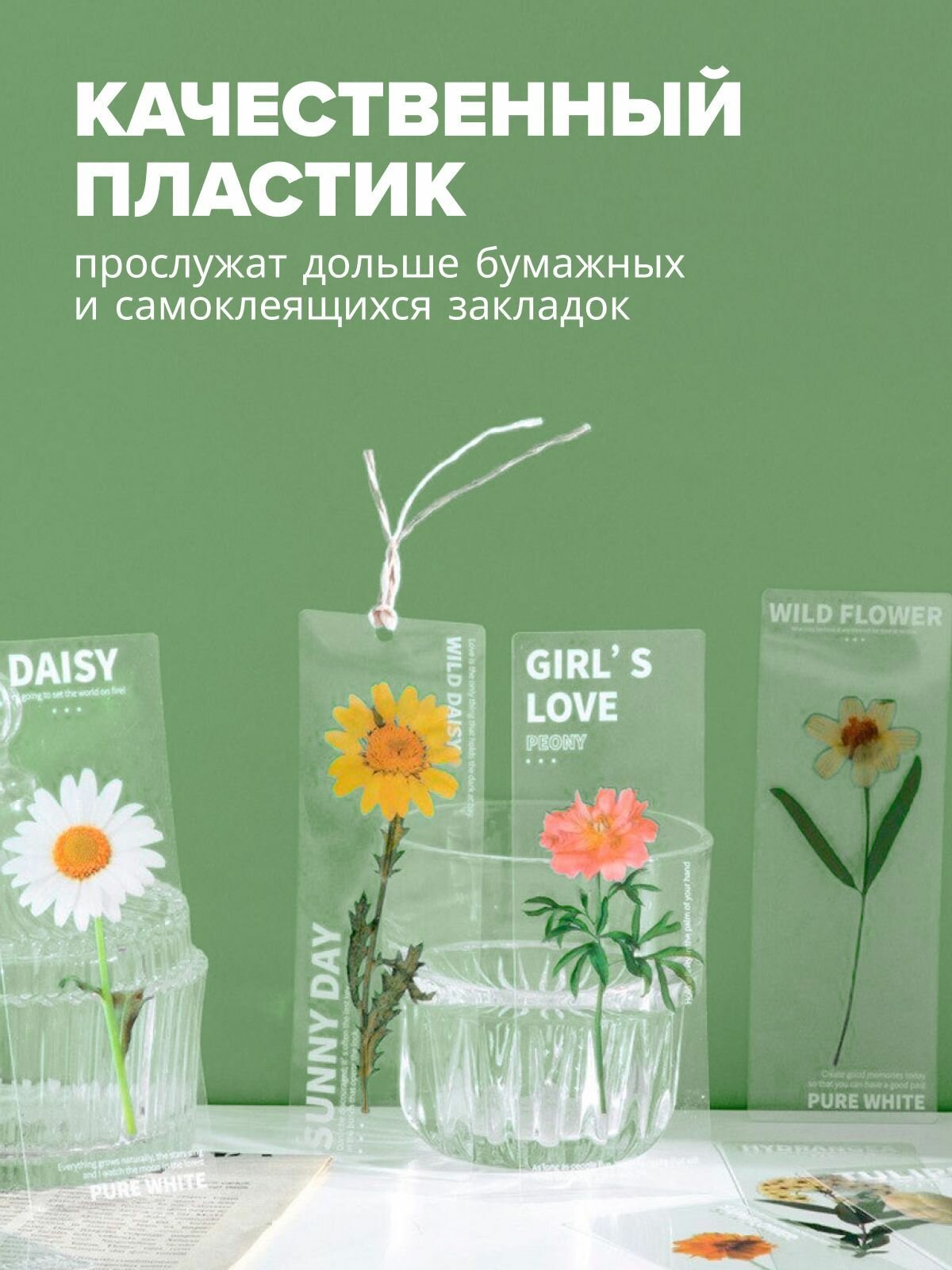 Закладки для книг и учебников пластиковые прозрачные набор, садовые цветы 290 ₽