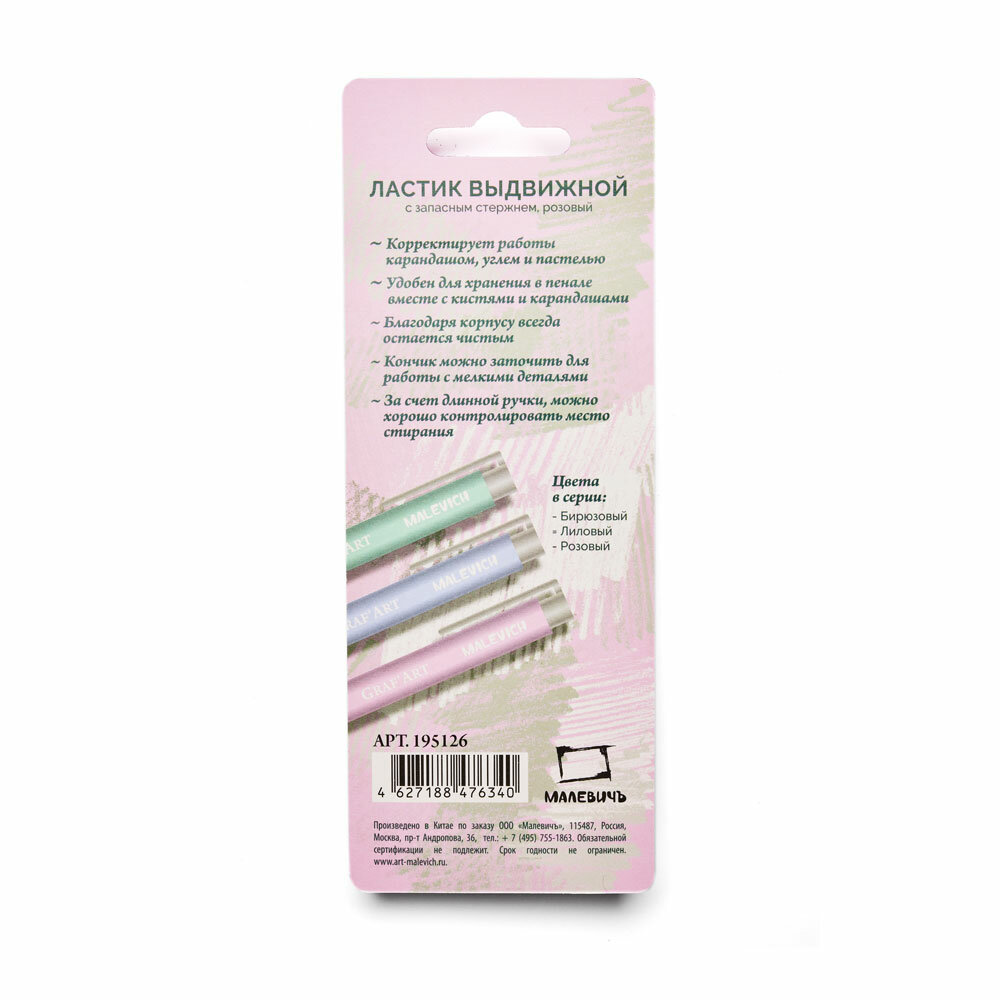 Ластик карандаш выдвижной Малевичъ с запасным ластиком для карандашей информация:
