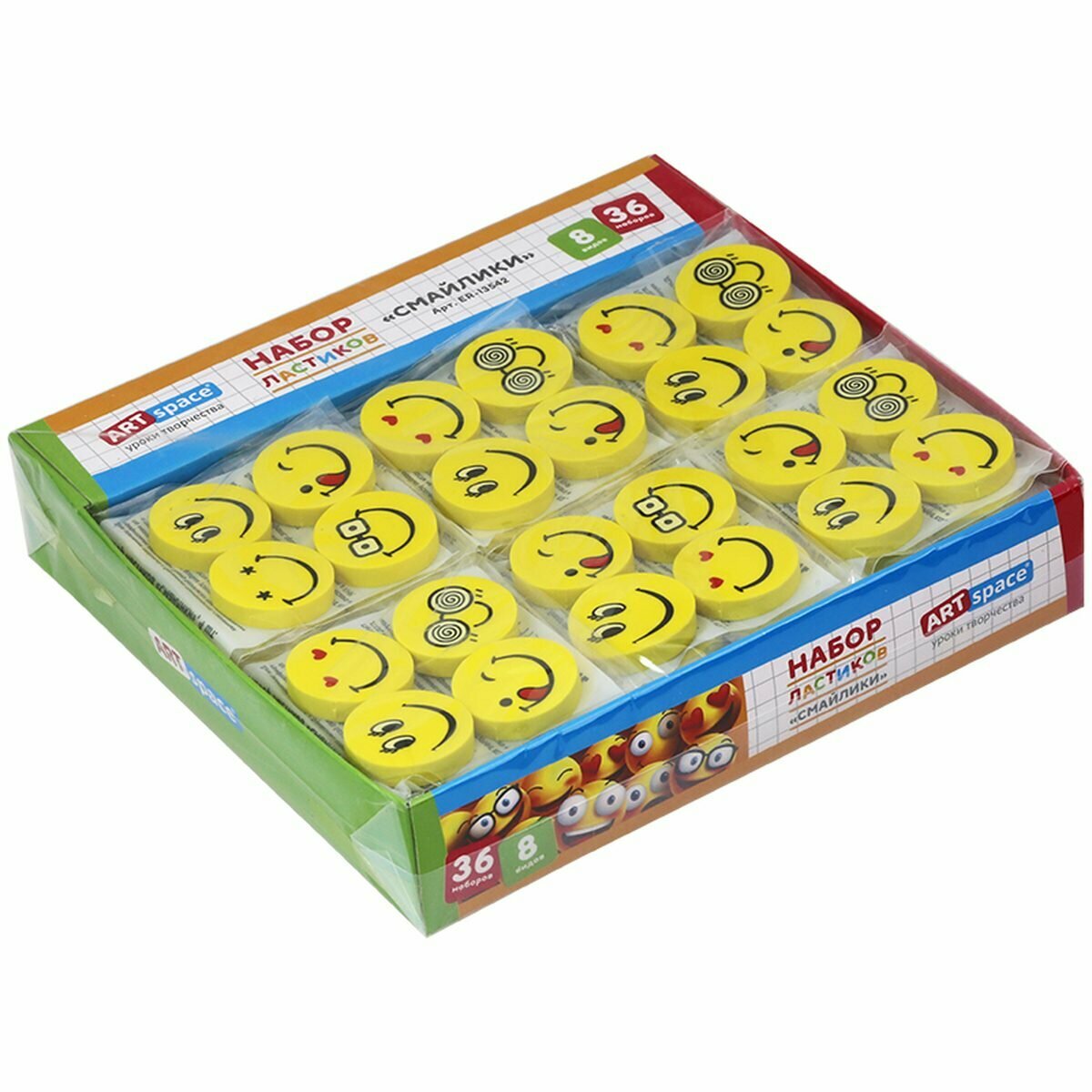 Набор ластиков ArtSpace "Смайлики" (круглые, термопластичная резина, 25x5мм) 4шт, 36 уп. (ER_13542) информация: