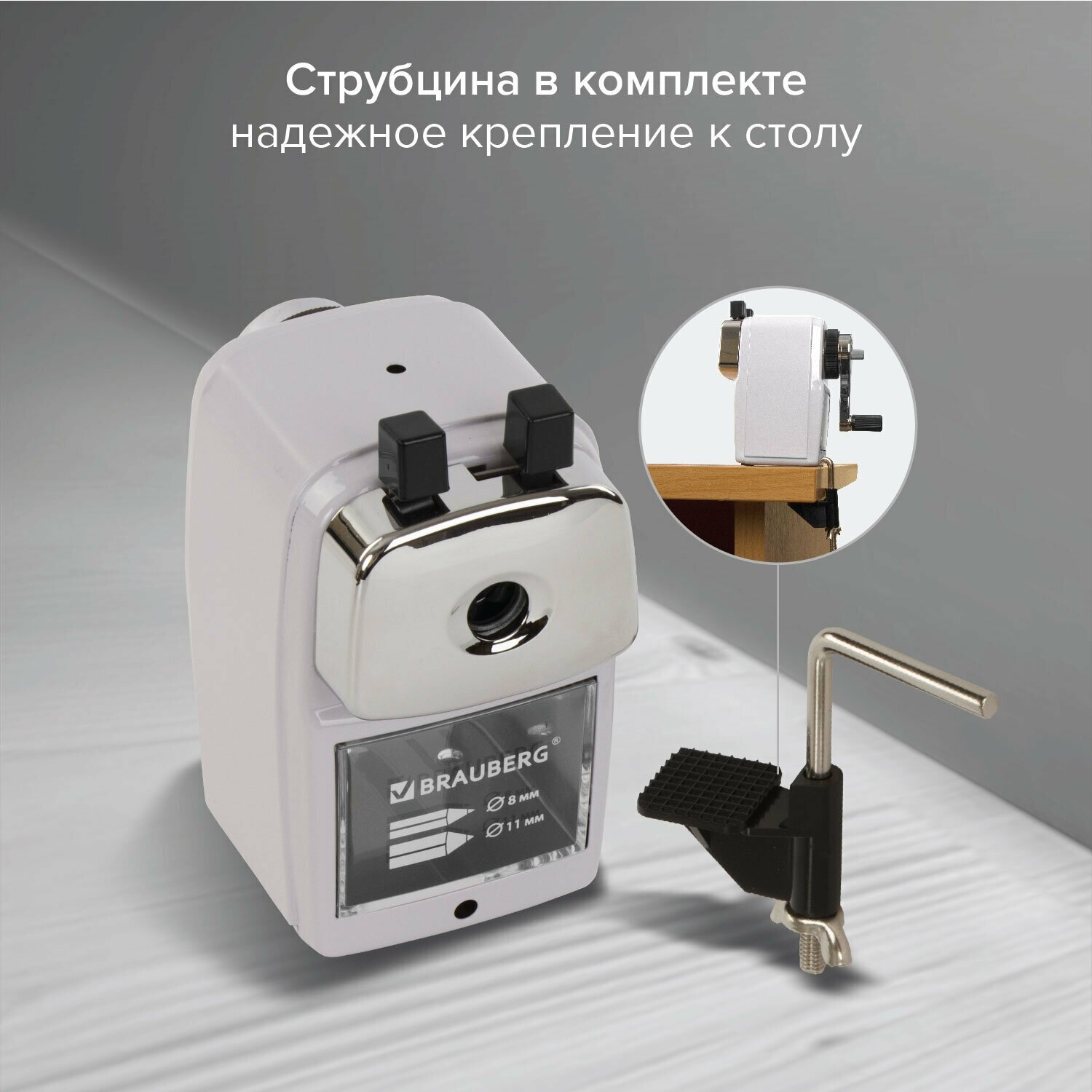 Точилка механическая настольная для карандашей с контейнером для стружки Brauberg Metallic-x, для ч/гр и цветных карандашей (в том числе утолщенных), 8/11 мм, метал. корпус, 228481 информация: