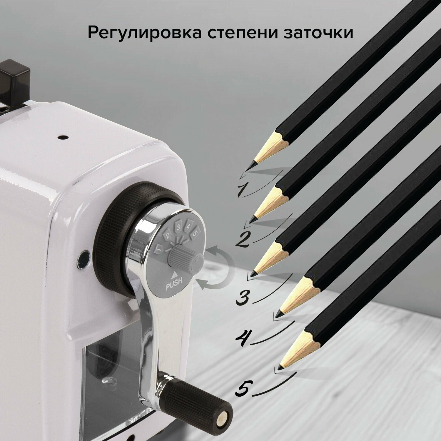 10 цен на Точилка механическая настольная для карандашей с контейнером для стружки Brauberg Metallic-x, для ч/гр и цветных карандашей (в том числе утолщенных), 8/11 мм, метал. корпус, 228481