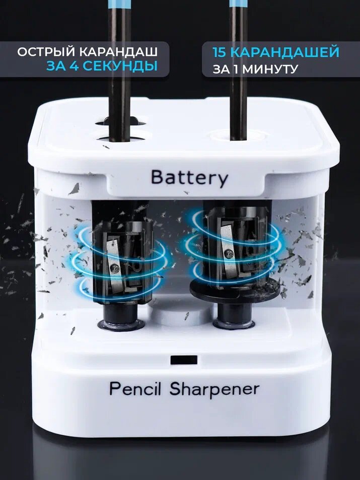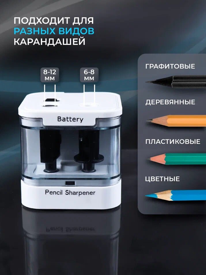 Отзывы на Точилка для карандашей электрическая Protect с двумя лезвиями и контейнером, точилка с питанием от батареек, Белая