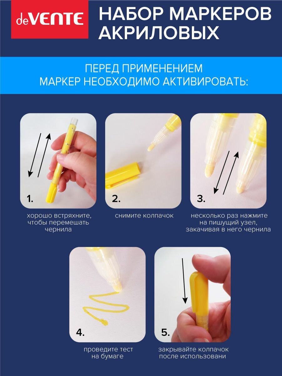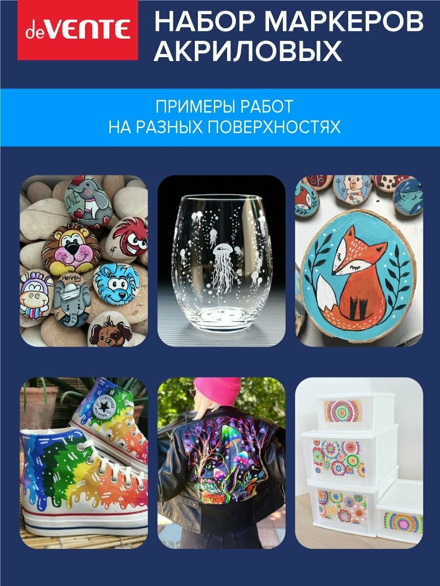 Набор маркеров акриловых "deVENTE. Creative Classic" 6 классических цветов, круглый корпус, пулевидный наконечник, ширина линии 1,5 мм 268 ₽