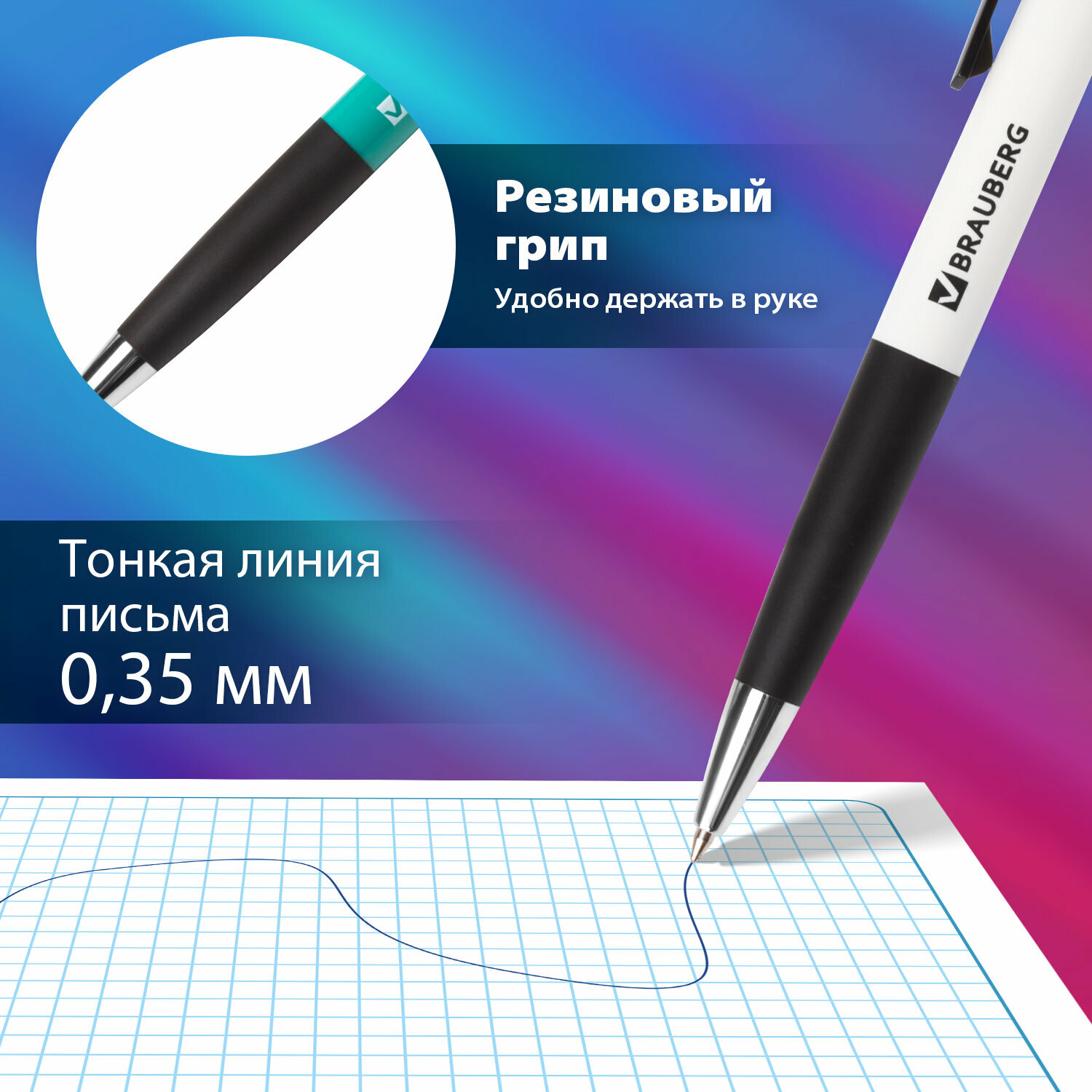 Отзывы на Ручка шариковая автомат. с грипом BRAUBERG Concept, комплект 12 штук, синяя, узел 0,7 мм, 880193